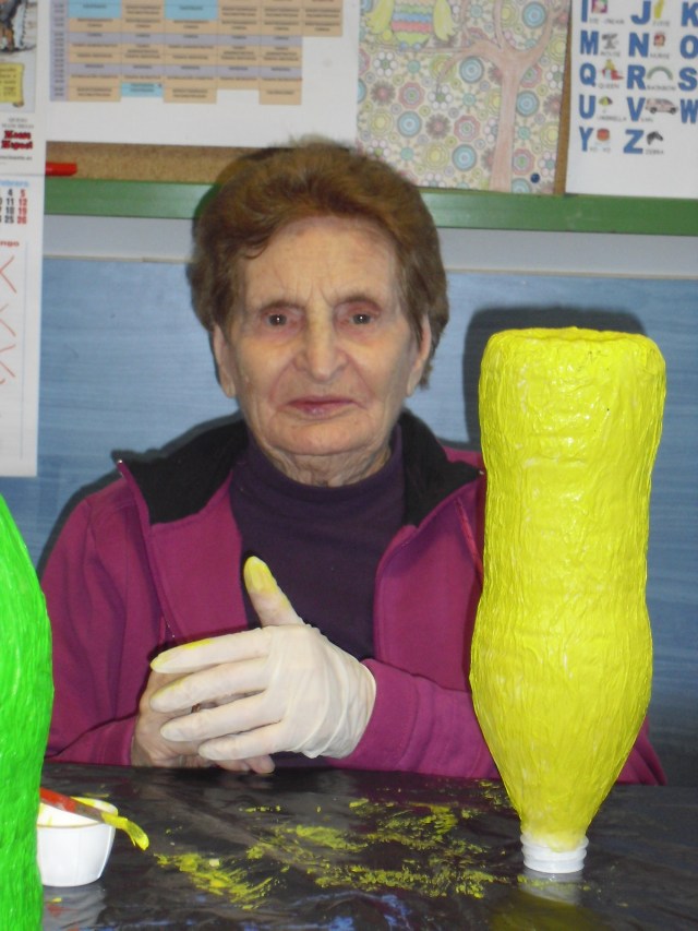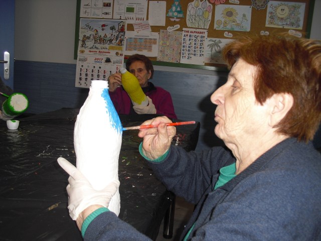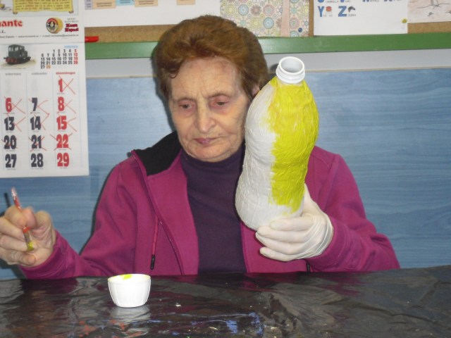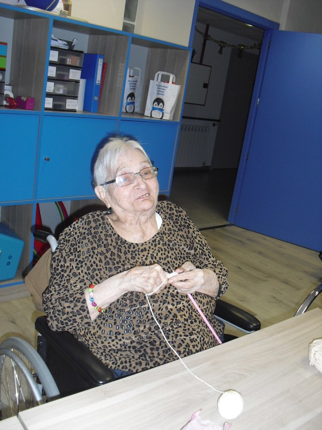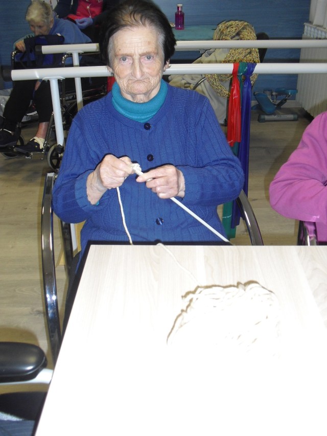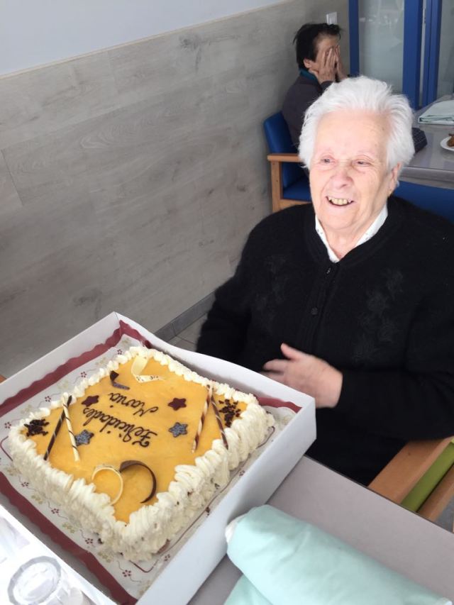 Todas las residencia deberían invertir parte de sua recursos en fisioterapia y terapia ocupacional, es muy importante mantener a los abuelos entretenidos, si están activos su calidad de vida mejora considerablemente. Son mayores pero también tienen derecho a rejuvenecer al estar despiertos, con ganas de coser, de pintar… Aprovecho para poner las fotos de dos cumpleaños: María se reía mucho al ver su tarta de cumpleaños y  de Cipriano porque, sin saberlo, han acabado siendo unas fotos muy especiales para su familia. Hay fotos de dos talleres: uno de pintura y otro de costura. Hemos creado un taller fijo de costura, en esta ocasión están haciendo punto pero también sirve para marcar la ropa de los residentes que  pierden la etiqueta o para los nuevos que entran, coser botones, el bajo de un pantalón…ellas se entretienen mucho y así la familia no tiene que hacer el marcaje de ropa o pagar para que se lo hagan- Es una pena que ningún hombre se anime pero en su época los chicos no aprendían a coser….las mujeres qué útiles somos aunque tengamos más de 80 años!!!!!!!!!!!!. Cuando nos toque a nuestra generación envejecer no me imagino qué talleres harán con nosotros….