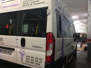 Ya tenemos la furgoneta adaptada para poder recoger a nuestros usuarios de centro de día, aunque tengan movilidad reducida ya no es un impedimento!!!!!!. Es una Citroen Jumper de 5,4 m de longitud y 2,52m de altura, tiene 6 plazas + dos plazas para  sillas de ruedas. La adaptación la han hecho en el Taller San Cristobal, de Zaragoza y la han rotulado las chicas de Rótulos Copialca. Ambas empresas trabajan de 10!!!. La hemos comprado en la Citroen de Calamocha…así que todo queda en Aragón!!!!!!!!!! menos yo que soy una riojana de Romanos. También queremos poder ofrecer un servicio de transporte a nuestros usuarios y con la furgoneta pequeña nos quedábamos cortos , ahora disponemos de 4 plazas en la pequeña y 8 en la grande. Aunque una de las furgonetas esté con el servicio de centro de día, la otra furgoneta puede encargarse de las citas médicas. Espero os guste tanto como a nosotros, los abuelos salieron a verla y estaban emocionados!!!!!!! a mis abuelos que no les falte de nada!!!!!!!!!, qué contentos se pusieron al ver que era para ellos…..se sintieron importantes!!!