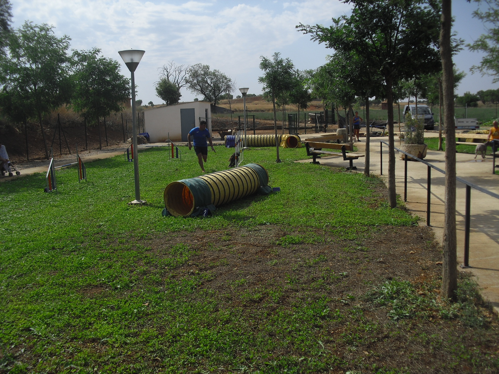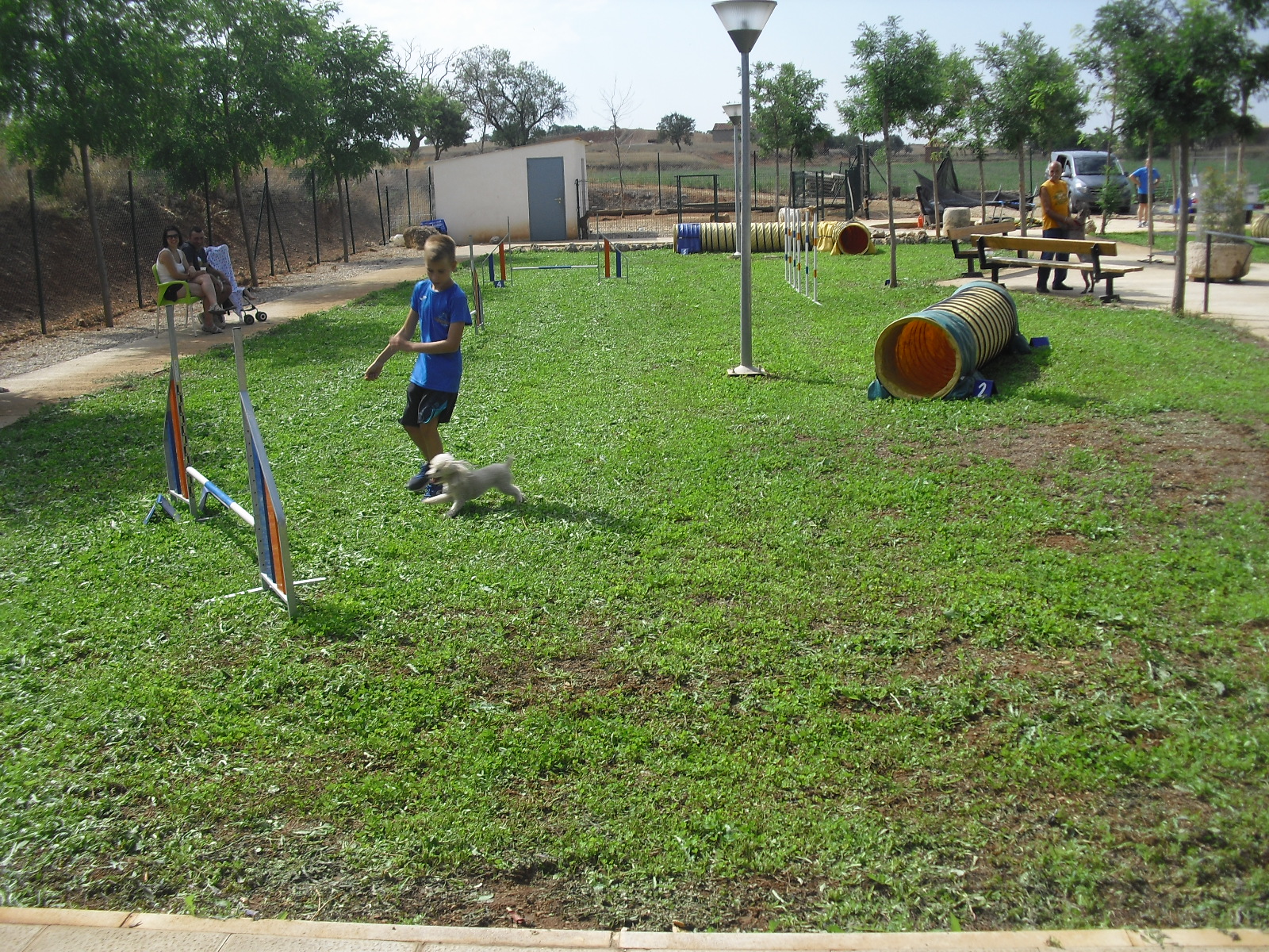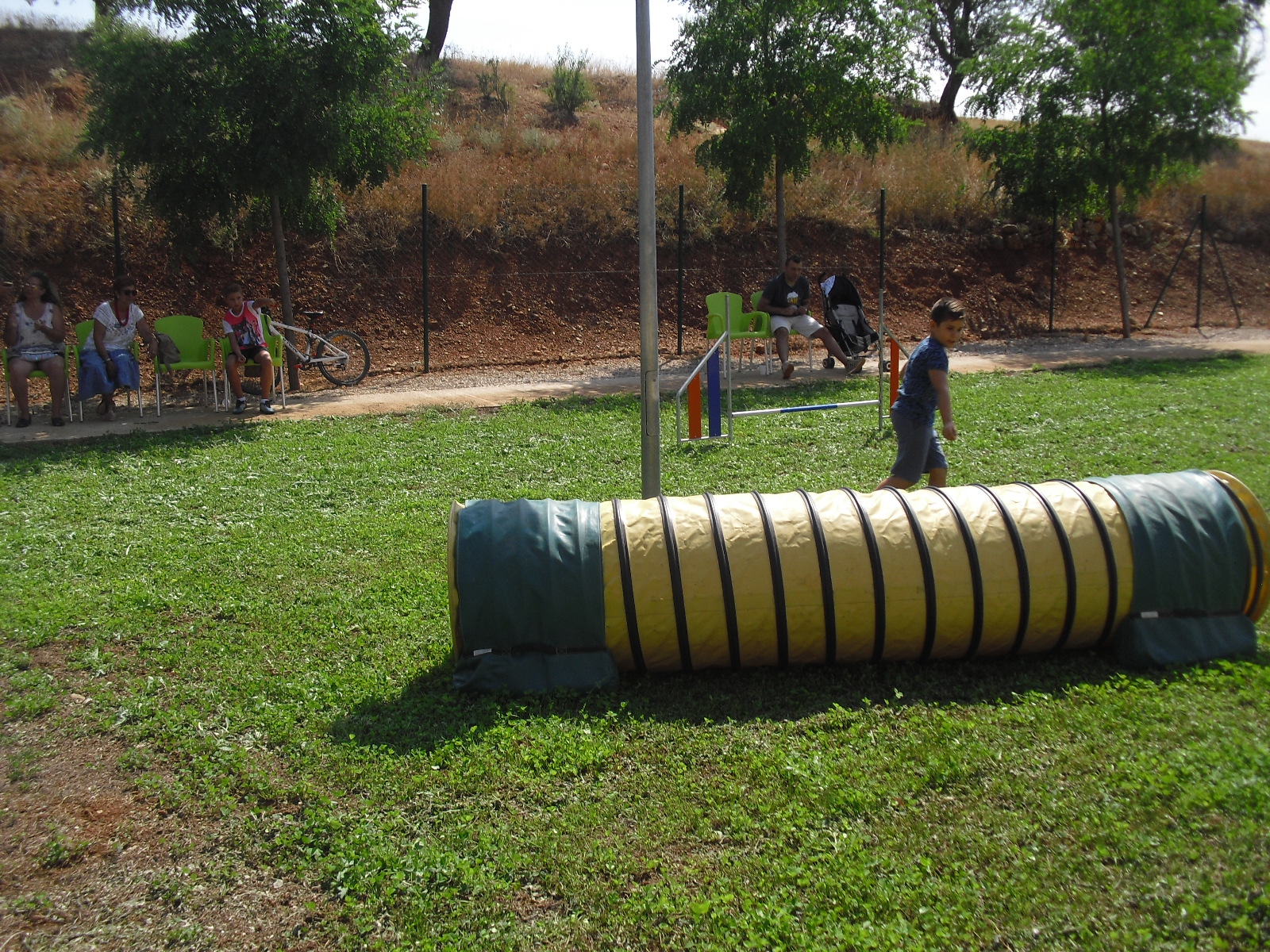 La Asociación Virgen de los Remedios de nuestro pueblo decidió traer esta exhibición Agility a nuestra residencia y poder hacer una intercambio generacional en el centro que para todos fue una buena experiencia. Sobre todo para los abuelos que pudieron disfrutar de los animales y de los niños, tuvieron la posibilidad de tener a su alrededor niños de todas las edades. Reconozco que cuando me dijeron «Agility» no sabía lo que era eso y busqué su significado: Modalidad competitiva donde un guía dirige a un perro sobre una serie de obstáculos, los cuales tienen que libar de manera limpia y lo más exacta posible , compitiendo contra reloj. Tenemos que hacer más actividades en el centro pues salimos de la monotonía del día a día y es bueno para todos…