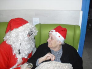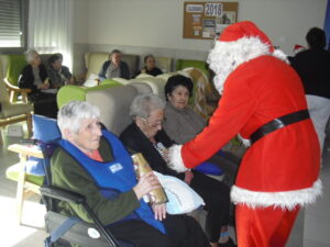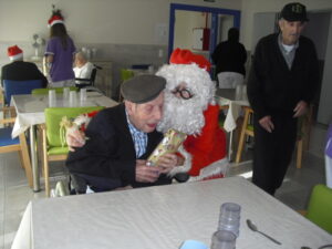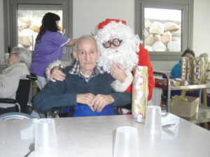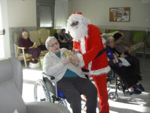 Ayer fue un día difícil pues tuve que despedirme de Rosalía, usuaria de nuestro Centro de Día hace un año y un mes, que estaba esperando para entrar en la residencia y , por fín, ya era la siguiente para entrar pero se puso enferma repentinamente y falleció el sábado 29 de diciembre. Resaltar de ella su gran sonrisa, su buena disposición para todo, su generosidad, su buen corazón y su conformismo para todo. No daba ningún problema y era todo ternura. La podías poner con todo el mundo a comer en el comedor que todo le iba bien…Muchas veces entraba en mi despacho y se colocaba al lado de mi mesa y cuando le preguntaba: qué necesitas Rosalía? Te puedo ayudar? Te ocurre algo? la mayoría de las veces no se acordaba de lo que me quería decir o había perdido su bastón o me preguntaba si tenía que volver a casa. Muchas veces perdía su bastón, le ayudaba a buscarlo y se ponía contentísima cuando lo encontraba. Lo que más me gustaba de ella era su sonrisa. Me encantaba,cuando entraba a la Sala de Día o al comedor o cuando se estaba celebrando la misa los jueves, sentarme enfrente de ella, buscarle la mirada y sonreírla, y ella siempre me devolvía su maravillosa sonrisa, para mí un gran regalo. Hubo un tiempo que me preguntaba: por qué no me dejas quedarme a dormir aquí? y a mí se me rompía el corazón pues le respondía: Rosalía, cariño es que no tenemos plaza pero estamos encantadas de tenerte con nosotras y enseguida te podrás quedar a dormir. Te queremos mucho y estamos deseando que te quedes aquí… Agradezco enormemente a sus hijos, en especial a Ismael y Sole por elegir nuestra residencia para sus padres y esperar pacientemente a una plaza para su madre durante ese año largo, cada día volvía a casa de su hijo con nuestro transporte del centro de día en espera de esa plaza. Un beso y abrazo enorme de todo el equipo para su familia …y Rosalía, sabemos que vas a estar junto a ellos, pero algún ratillo vente por la residencia y entra a mi despacho a verme!!! Espero os gusten estas foticos de vuestra madre. El resto de fotos son de la visita de Papa Noel y de la misa que celebró nuestro cura Federico en Nochebuena con todos nuestros abuelos, trajo panderetas, cantamos villancicos y nos hicimos fotos con Jesús…un día muy enriquecedor para todos. La próxima semana pondremos fotos de la visita de los jóvenes de la Comunidad de Jerusalén procedentes de Madrid, Zaragoza y Cataluña, que compartieron con los abuelos una hora de villancicos y alegría. Adiós Rosalía!!!!!!!!!!!!!!!!