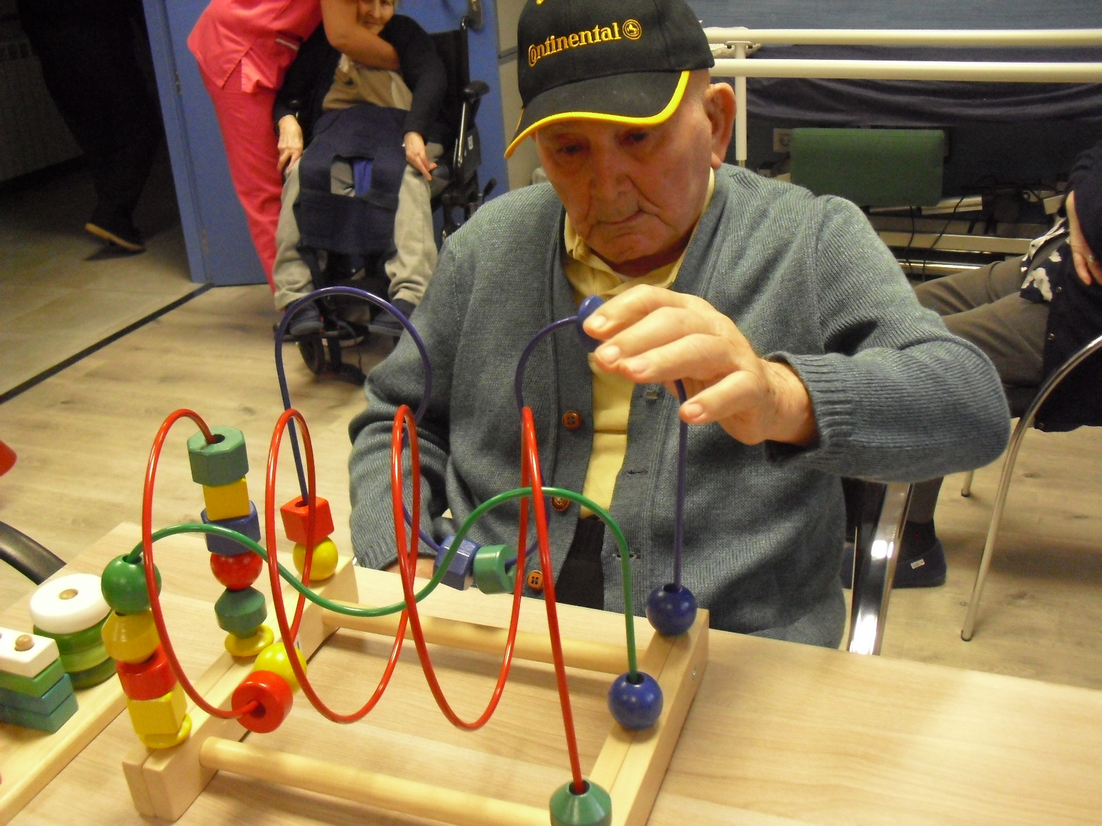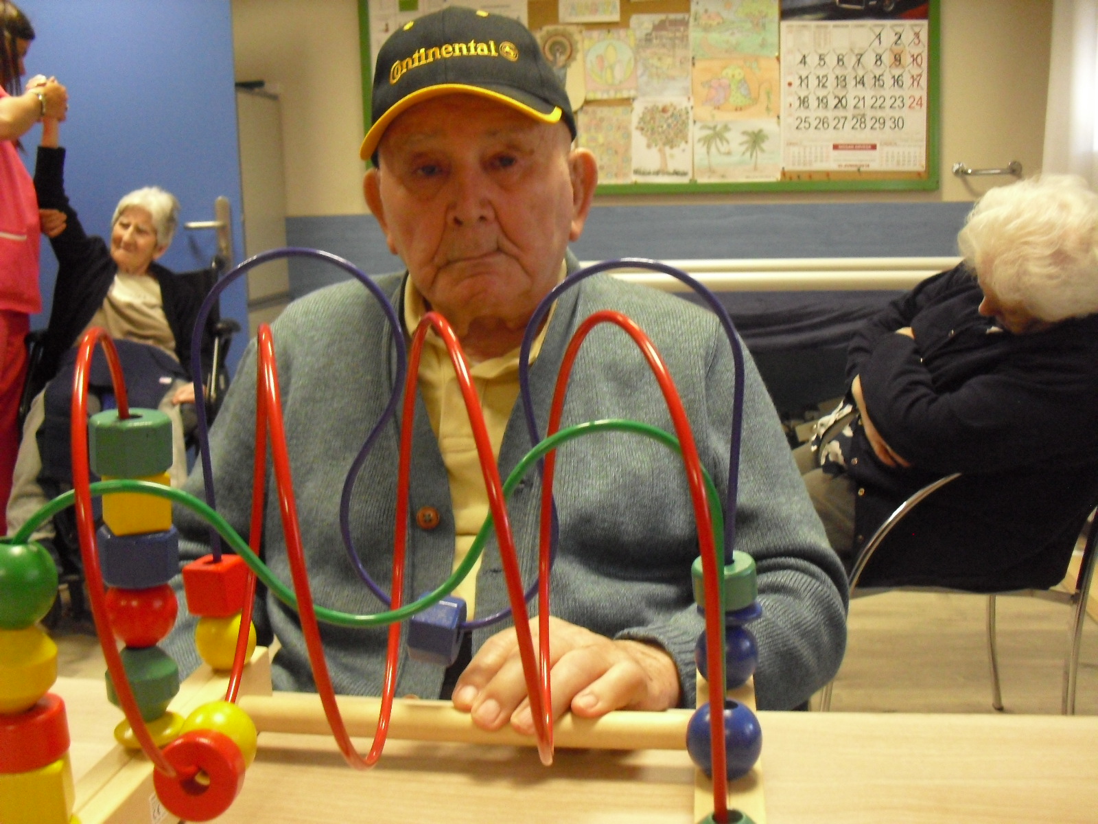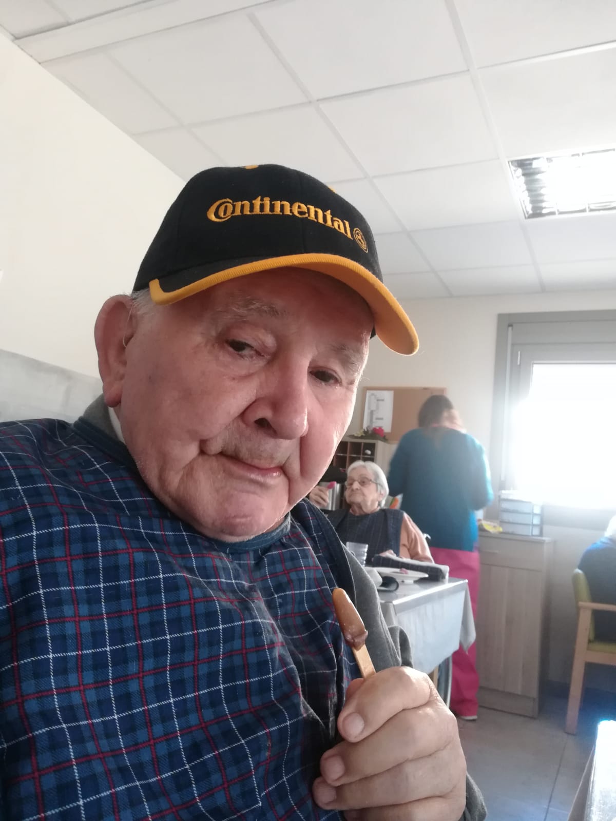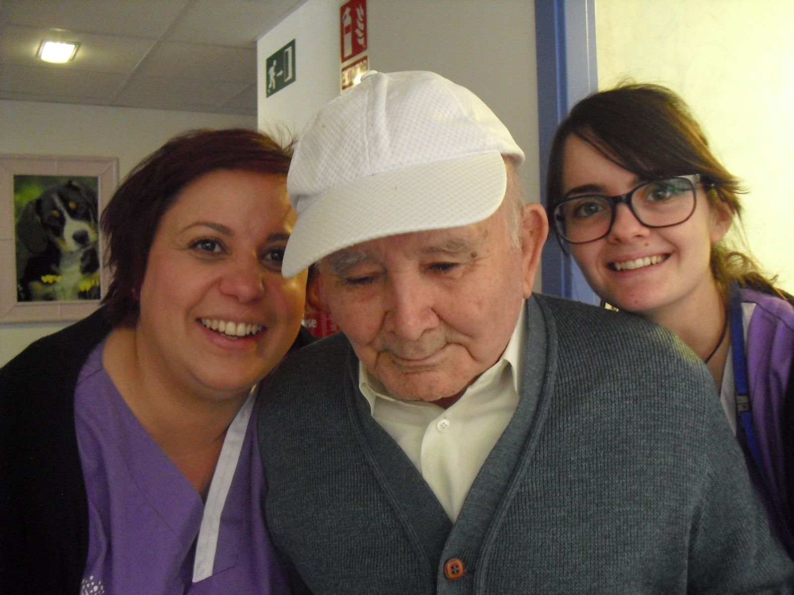 Tenemos que despedir a Cipriano, nosotras lo conocimos con un deterioro cognitivo avanzado producido por la demencia y, aunque era agresivo en determinados momentos porque se sentía amenazado, pudimos llegar a disfrutar de su sonrisa en otros momentos del día. Otros pacientes que tenemos con demencia no paran quietos pero Cipri ya no andaba y pasaba mucho tiempo dormido, en su mundo. Sus hijas lo adoraban y pasaban mucho tiempo con él en las visitas, para estimularlo probaban de todo: siempre le traían algo de comida o le daban ellas mismas la cena o la merienda, traían a sus perritos pues le gustaban mucho a su padre... para ellas ha sido muy difícil ver esa progresión de la enfermedad pero lo más importante es que han estado ahí, junto a él. Les mandamos todo el equipo un fuerte abrazo!!!Las fotos que voy a poner de Cipri son en las que le hemos captado haciendo alguna cosa, en una de ellas tiene una sonrisa preciosa al lado de dos de las gerocultoras, recuerdo que cuando ví esa foto me transmitió Cipri unas ganas de poder entrar en su mente y saber qué pensaba, de poder haberle visto en sus buenos años...pues tuvo que ser una persona muy agradable...y una si que la he puesto dormido, en medio de las actividades, como solía estar nuestro Cipriano!!!!