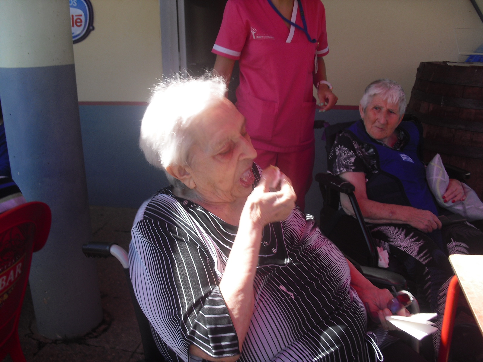 Como todos los años, un día nos gusta llevar a los abuelos a la piscina de Romanos, a tomarse un helado allí. Movilizamos a casi todos los abuelos, ya sean válidos y/-o asistidos y todos ayudan para que puedan disfrutar de ese momento diferente al resto de los días. Pusimos en marcha las dos furgonetas de la empresa para poder llevar a todos!!! Es importante salir de la rutina de vez en cuando y ellos también lo agradecen. Aprovecho también para poner unas fotos de la cena de empresa de verano, faltaban unas pocas trabajadoras pero casi estábamos al completo. Fuimos a cenar a Villahermosa, al bar de Pili, que estuvo trabajando con nosotras hace tiempo. Me gusta ver a todas juntas !!!!