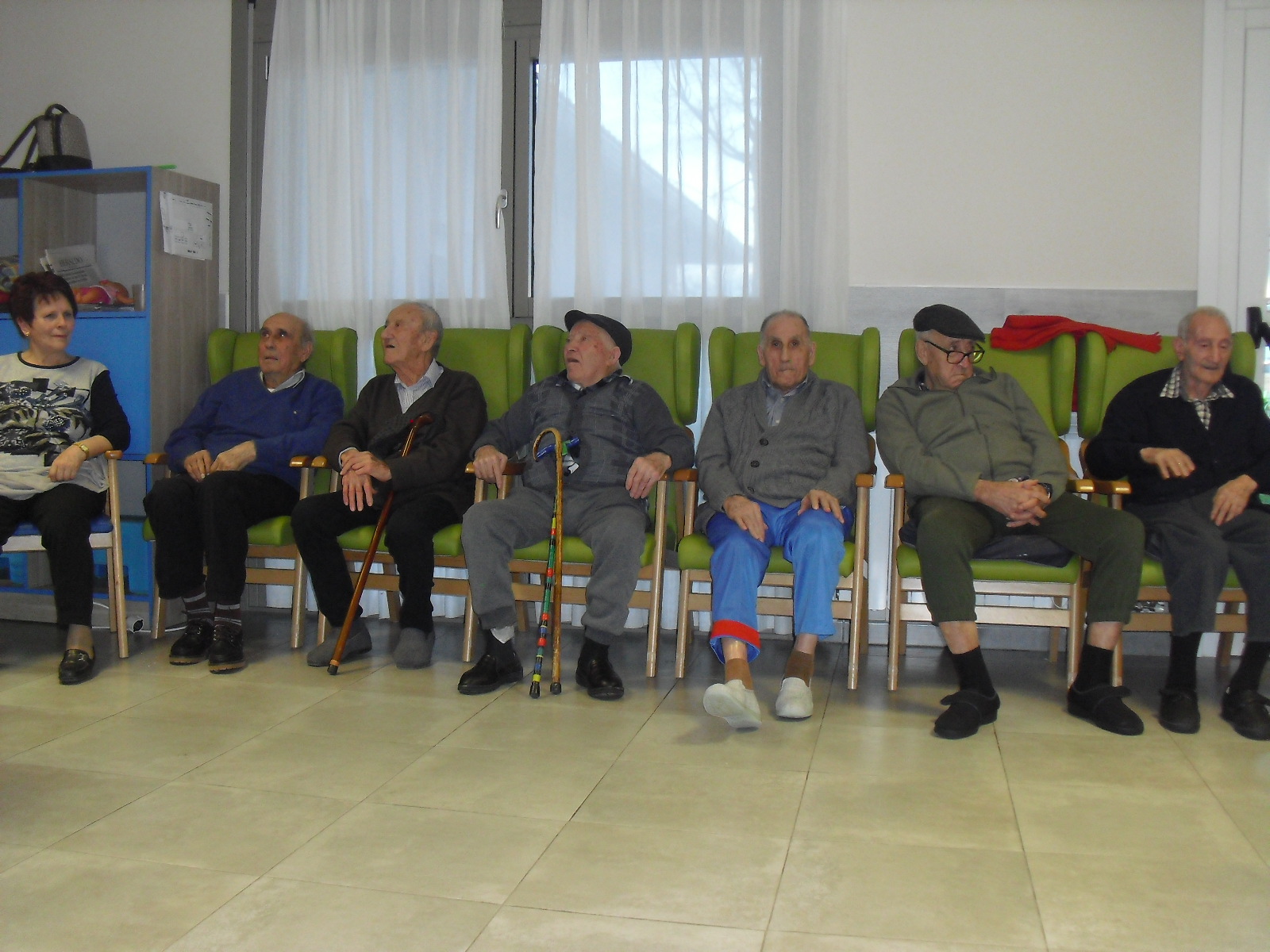 Lo primero disculparme por la tardanza a la hora de publicar, pero Movistar para poder hacer esta publicación me ha tenido dos horas y media!!!!!!!!!!!!!!Este año han hecho unas estrellas con  las pinzas de madera, las que estaban pintando en uno de los talleres y les han quedado preciosas. Además el árbol de Navidad queda muy elegante , os invitamos a que hagáis estas estrellas tan originales. Gracias a Charo, una de mis trabajadoras, quiso regalar a todos los abuelos una velada que les hizo superfelices, ya que trajo a los Amigos de Mainar a deleitar con su actuación a todos. Los componentes son José Gómez, tocó el laúd, Mª Carmen al mando de la guitarra y la voz de Victorino Felipe. Ellos tocaron piezas de baile de los años 50-60: pasodobles, boleros, tangos, jotas y algunos villancicos. Disfrutaron muchísimo e incluso bailaron. Gracias Charo y gracias a los Amigos de Mainar por su generosidad hacia nuestros mayores.