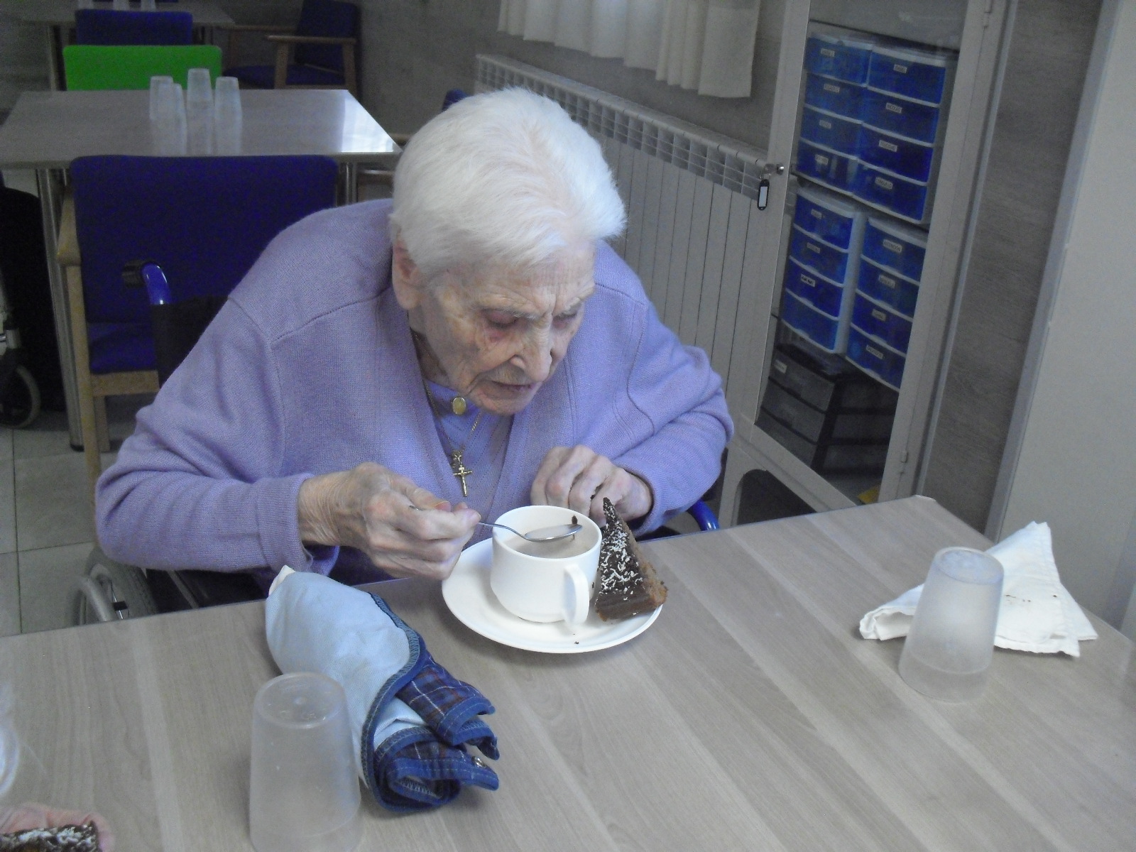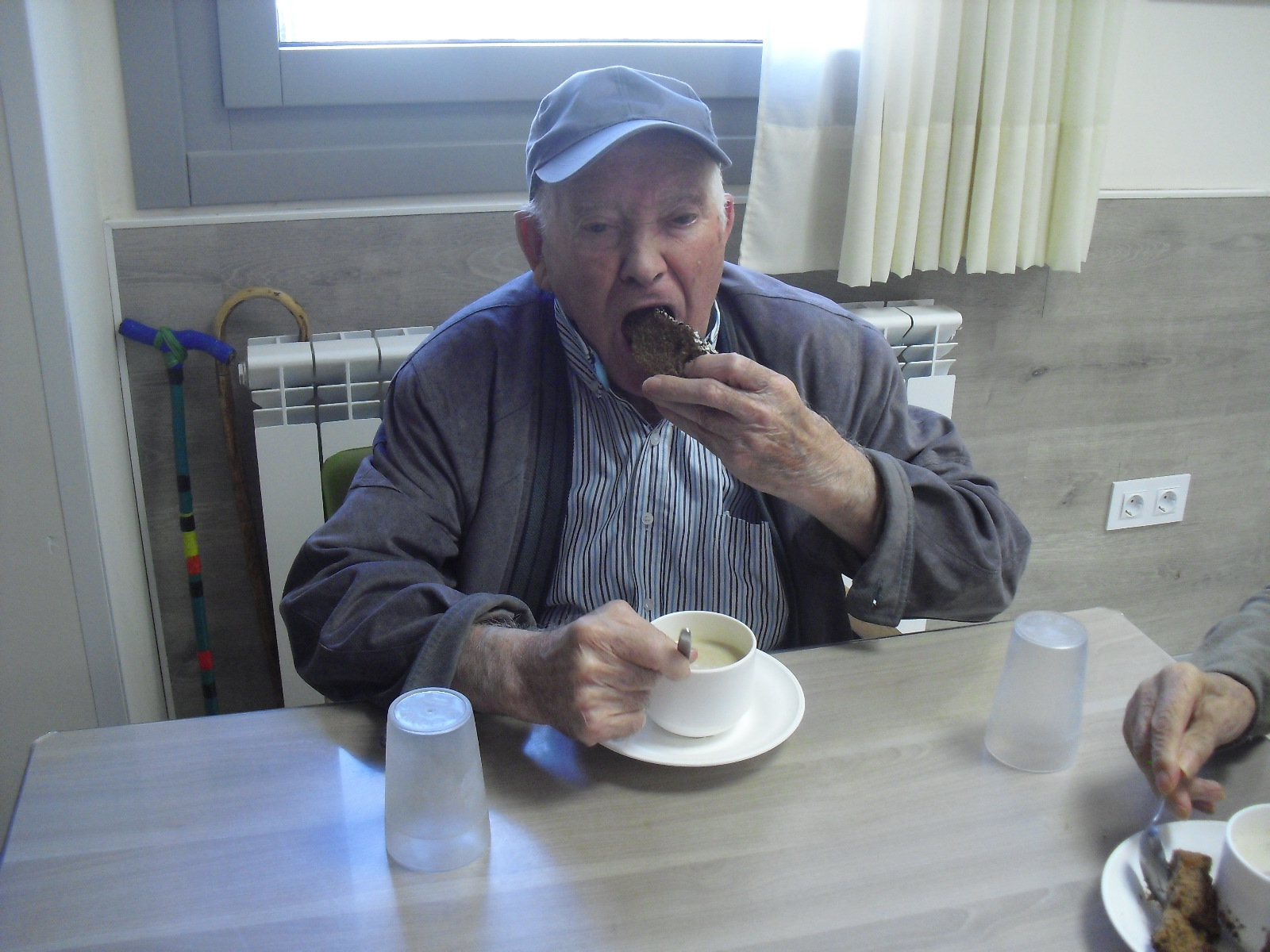 Tantas noticias preocupantes con el coronavirus que me ha apetecido compartir con todos vosotros unas fotos agradables, en las que nuestros abuelos están disfrutando comiéndose un bizcocho casero de chocolate, que trajo un familiar para celebrar un cumpleaños de uno de ellos... Un poquito de normalidad entre tanto caos!! Aquí seguimos estando bien, nadie ha dado fiebre ni ningún síntoma, un abrazo de todo el equipo a todos los familiares. Entiendo perfectamente la angustia que sufrís por no poder verles pero los estamos cuidando muy bien y les protegemos todo lo que está en nuestras manos. Aprovecho la ocasión para reclamar al Gobierno de España que, ya que nos han mandado circular de que en caso de sospecha de tener algún positivo de coronavirus, no lo vamos a poder derivar al hospital (excepto que necesite cuidados en el hospital muy específicos), lo debemos poner en aislamiento en la residencia: POR FAVOR NECESITAMOS MASCARILLAS, BATAS...PARA PODER TRATARLOS AQUÍ. Tienen que hacer que nos llegue el material para poder realizar nuestra labor. En esta situación estamos la mayoría de las residencias privadas y  empresas de ayuda a domicilio, para no colapsar los hospitales (que son necesarios para otras personas que no pueden ser asistidos en otro lugar), YO ESTOY DISPUESTA A PONER MI GRANITO DE ARENA Y AYUDAR pero no puedo obligar a mi equipo de trabajo que si, esto sucede, atiendan a un caso positivo sin protección ninguna... he intentado encontrar entre los proveedores suministro pero está todo agotado. Apelo a su responsabilidad para que garanticen el suministro de material necesario para que nosotras podamos realizar nuestro trabajo con algo de protección si fuese necesario!!!!!....