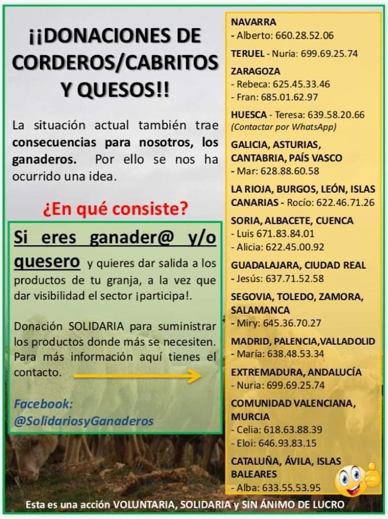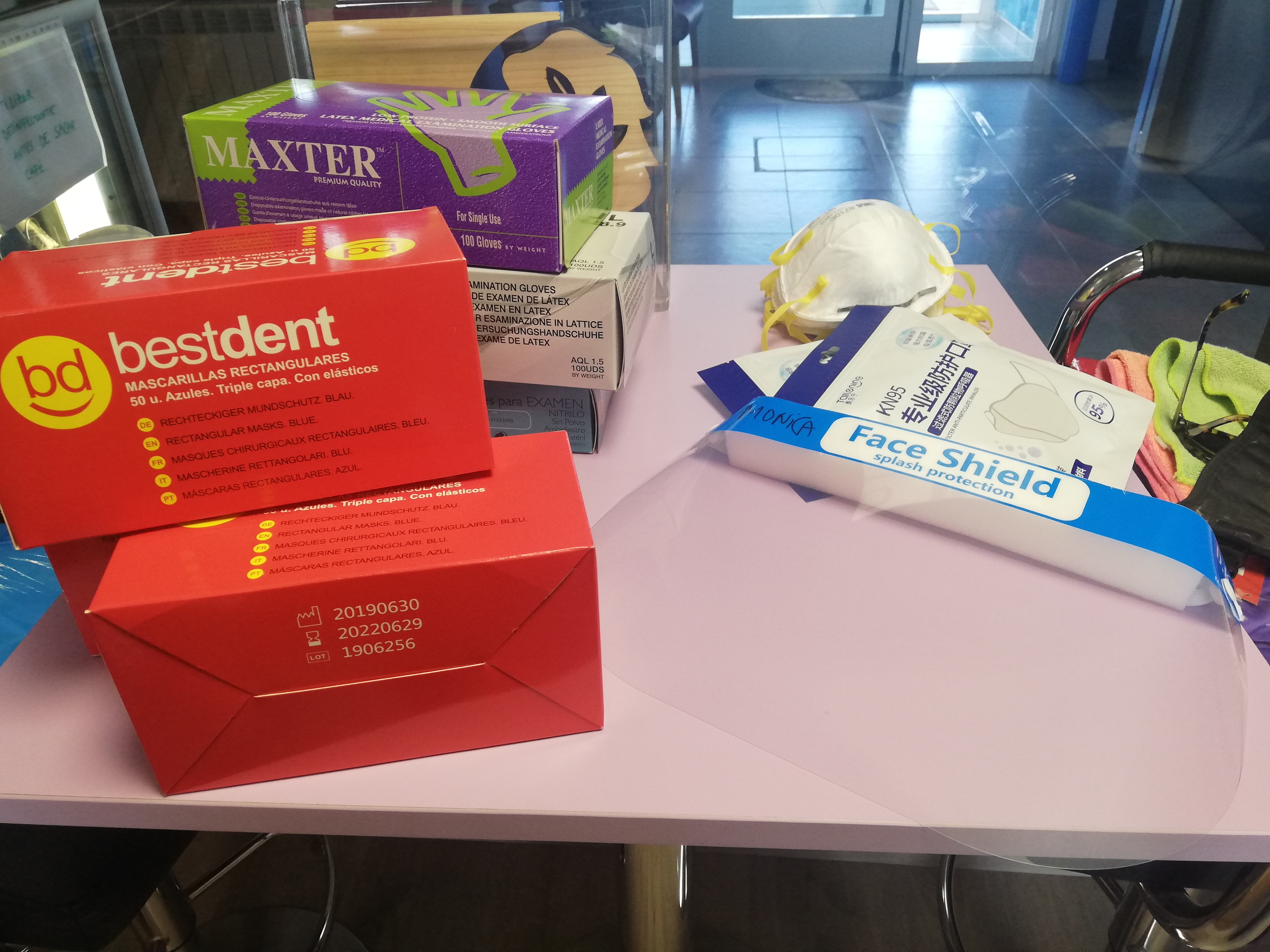Domingo 12 de abril, todos estamos sin fiebre. Ánimo a todos y todas!!! Muchos de nuestros vecinos, amigos, familiares, desconocidos lo están pasando verdaderamente mal porque han perdido sus puestos de trabajo, a su abuelo, abuela, padre...nuestros ganaderos, con toda la hostelería cerrada, tienen los animales para la venta parados sin salida o a precios muy bajos, miles de negocios arrastrados a la quiebra. Todos debemos y tenemos que ayudarnos en la medida que podamos: consumir cordero, ternera. productos españoles pues nuestras tiendas, carnicerías y el sector primario está trabajando para abastecernos, llevar la compra a las personas mayores a casa, respetar el confinamiento...SOLIDARIDAD Esta semana hemos recibido una donación de dos corderos de nuestros ganaderos, algo que les engrandece por lo mal que lo están pasando...y aún así donan corderos para ayudar a otros . Gracias, muchas gracias ya que mis abuelos van a degustarlos y esta semana se han podido olvidar un poco de los acontecimientos y han elegido comer unas chuletas de ternasco tradicionalmente. Les haremos varias recetas que esta carne tan saludable nos permite hacer. También hemos recibido más material del Instituto Aragonés de Servicios Sociales: pantallas de protección, 100 mascarillas quirúrgicas, 6 mascarillas buenas, 3 batas, 600 guantes y botes de gel desinfectante. Os pongo las fotos.