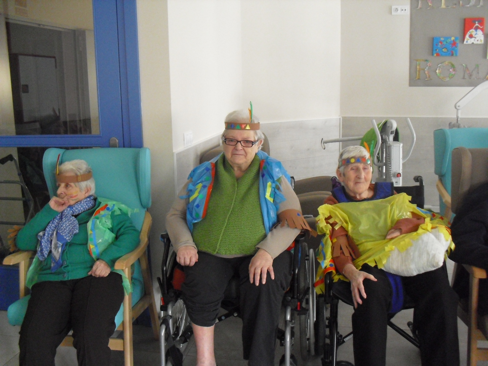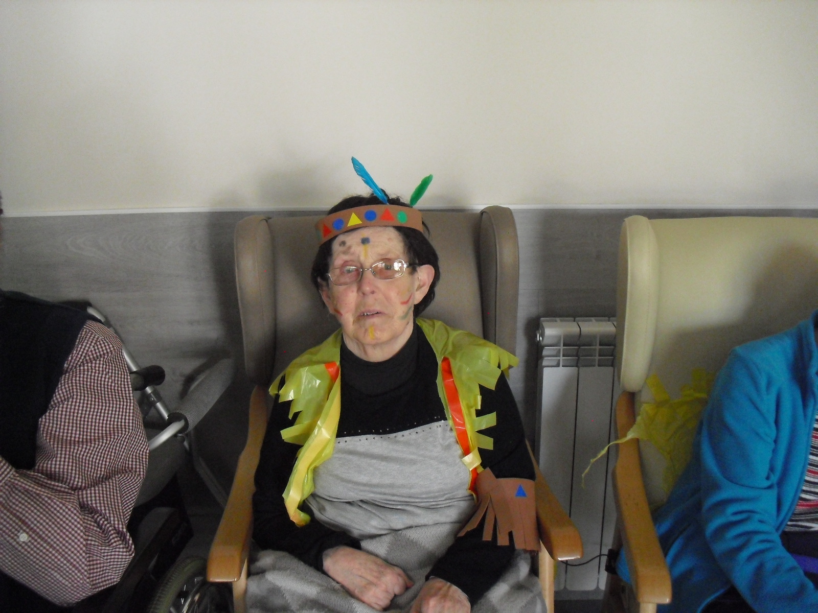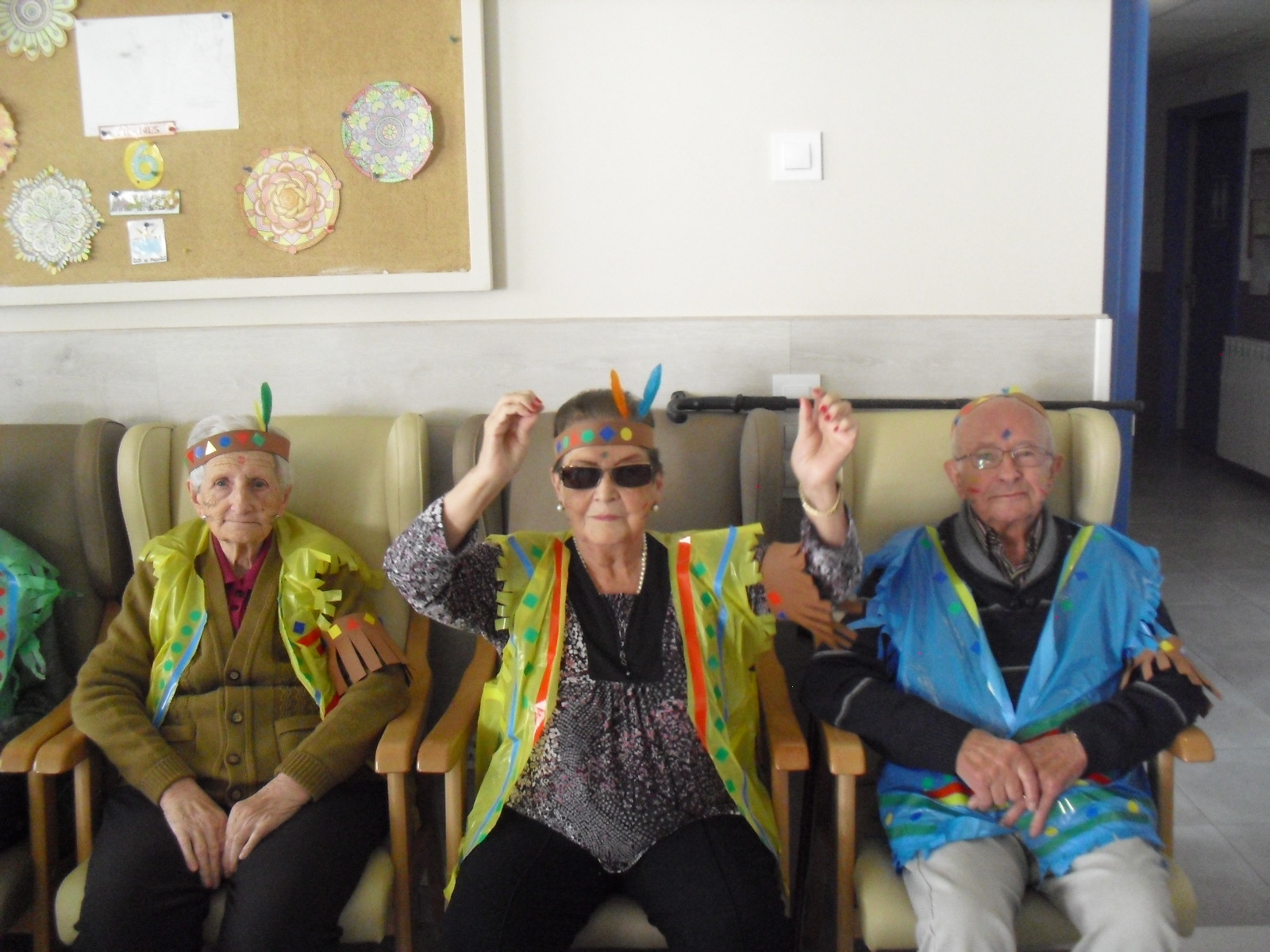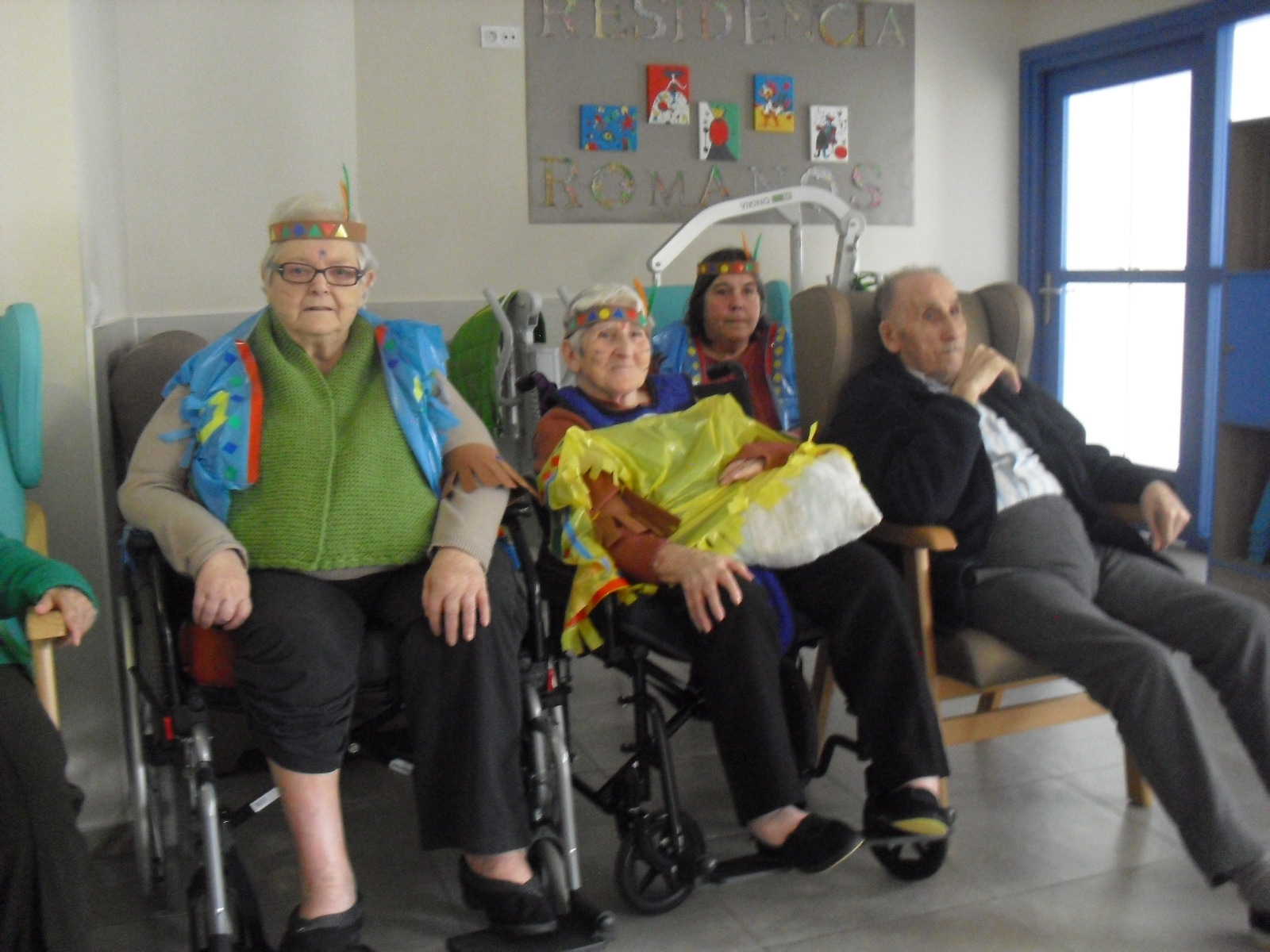 Os mandamos ánimo a todos y todas!!. Tenía pendiente poneros las fotos de la fiesta de disfraces de indios que hicimos justo antes del estado de alarma. Salen todos los usuarios del centro de día y vinieron algunos familiares. No sabemos cuándo se podrán repetir momentos así, pero cuando lleguen los saborearemos aún mejor. Hubo baile y lo que más les gusta a todos: merienda con refrescos!!!!!! y así lo hicimos. En cuanto pase esto vamos a organizar una fiesta en el jardín con puestos de comida y de exposición de las manualidades para que puedan venir los familiares...eso sí con mascarillas y gel para desinfectar!!!!!!!!!! Este sábado decidí llamar a todos los familiares para tranquilizarles, transmitirles que estamos bien y darles mi apoyo pero casi fue peor pues al recibir una llamada de la residencia más de uno se asustó. Seguiré enviándoles wasap y mensajes a los móviles para no asustarles...que bastantes preocupaciones tenemos ya todos.