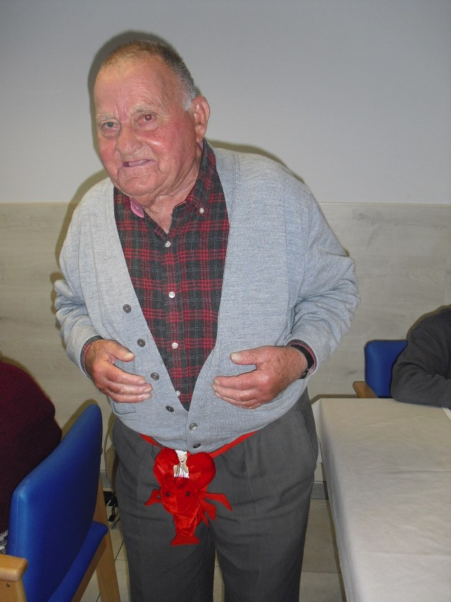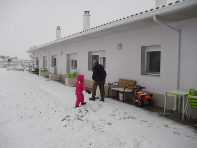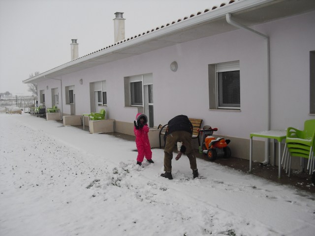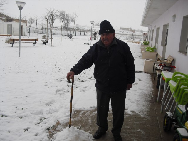Siempre acabamos el año con el Bingo y los premios que prepara Laura, pasan un rato entretenido y se ríen mucho con los regalos. Todas las semanas juegan al Bingo y cuando ganan pueden elegir un plato para introducir en el menú y los más votados son: huevos fritos con patatas fritas y jamón, chocolate para merendar, melocotón en almíbar de postre…en fin siempre hay algo que apetece mucho comer y a veces prohibido por las dichosas dietas…pero un día es un día!!!. Este fin de semana volvió a nevar pero nada que ver con el año pasado, sólo dos abuelicos se atrevieron a salir a tocar la nieve y Nayara aprovechó para tirarl unas bolas de nieve a Victorino!!!!