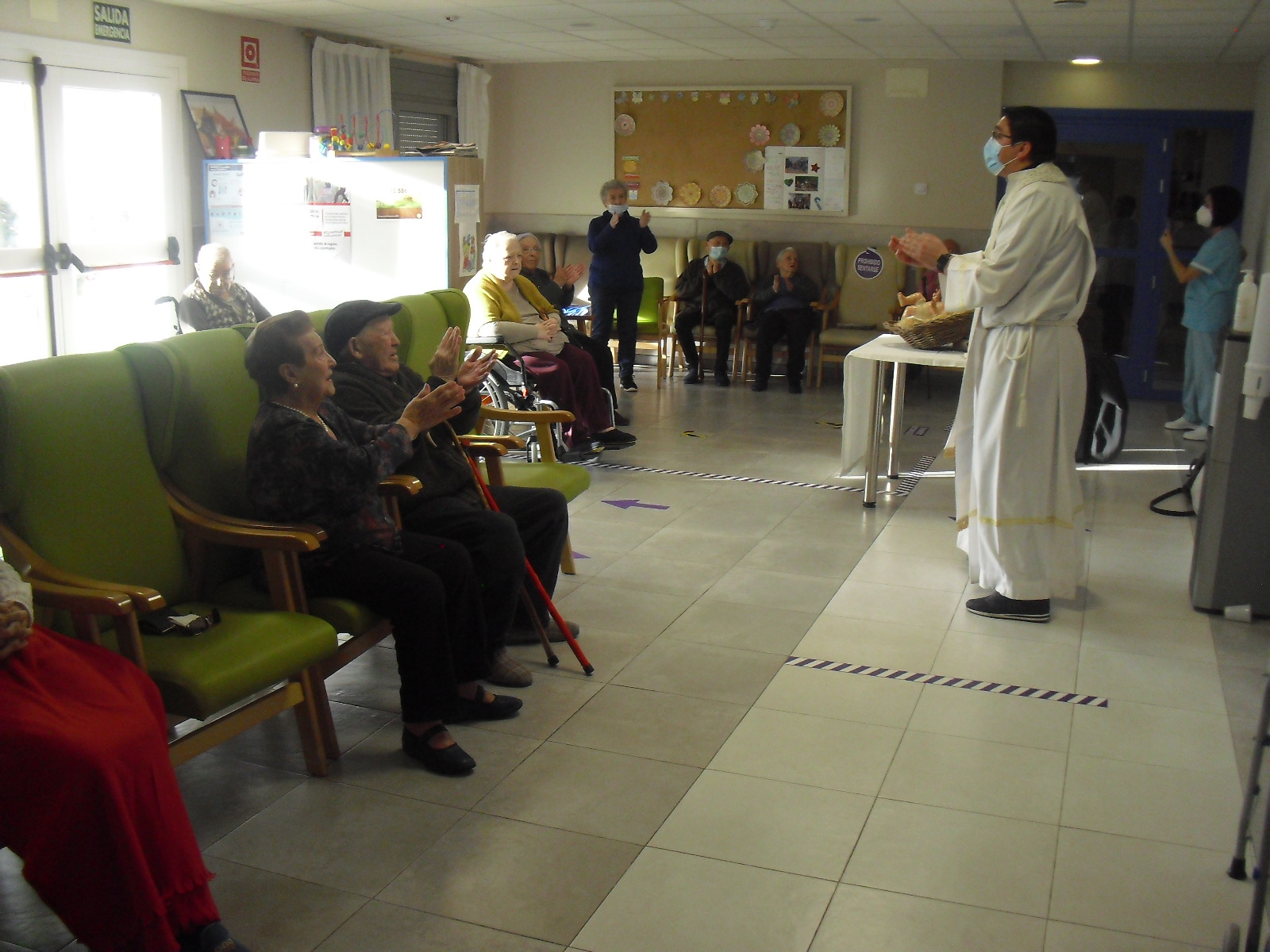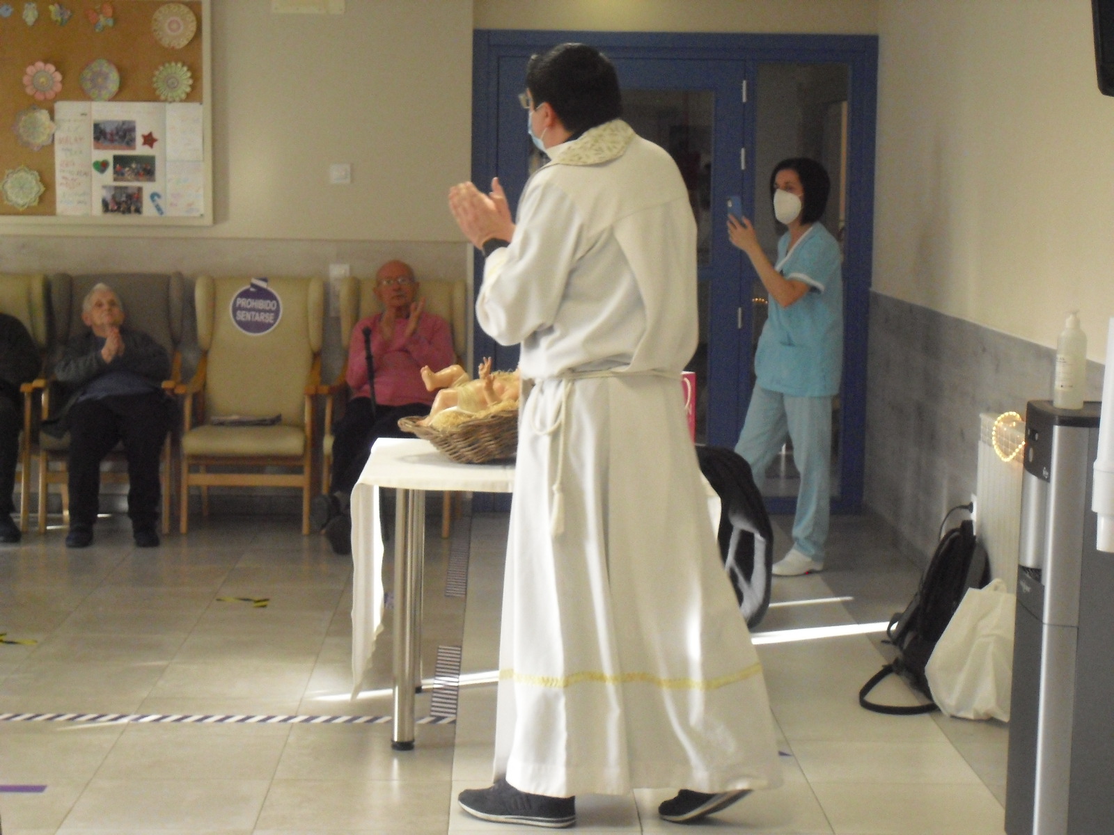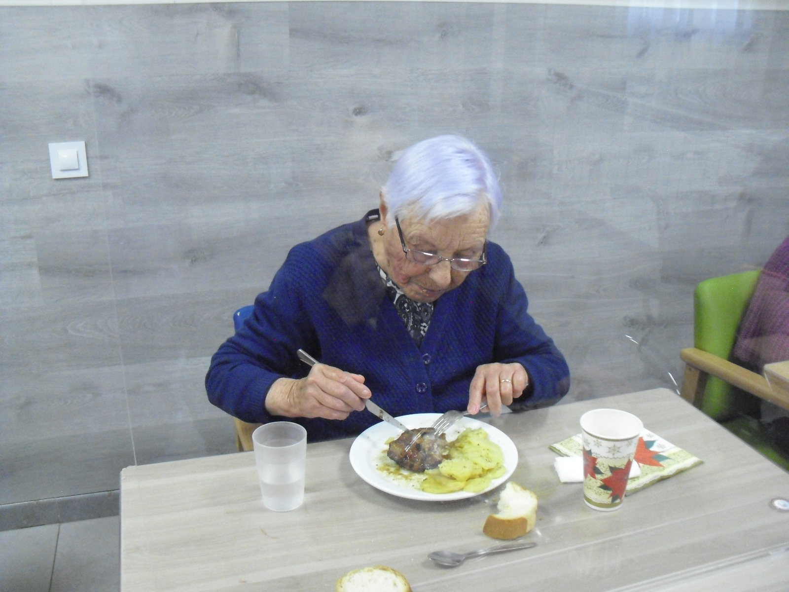Agradecer a nuestro cura Federico la misa que dió para todos los abuelos estas Navidades, ellos tenían muchas ganas de oír la misa y ver al Niño Jesús!!!, además luego entonaron unos villancicos que alegraron mucho pues Federico siempre hace de la misa un momento de alegría. En Nochebuena se cenaron entremeses y lubina al horno con patatas, postre flan con melocotón y los turrones. Por supuesto brindaron con sidra y pudieron sonreír todos juntos a punto de despedir este año 2020 que ha sido un final de pesadilla!!! En Navidad tuvieron entremeses y ternasco asado. El próximo día pondremos fotos del menú de Año Nuevo, en Reyes repetimos con chuletas de ternasco pues les encanta!!!!!!!!!!!!!! Ha sido una Navidad diferente, extraña, pues nos faltaban muchos y echamos mucho de menos a los familiares por la residencia entrando y saliendo en estos días tan especiales pero no podemos hacer nada...sólo esperar pues el tiempo lo cura todo!!!