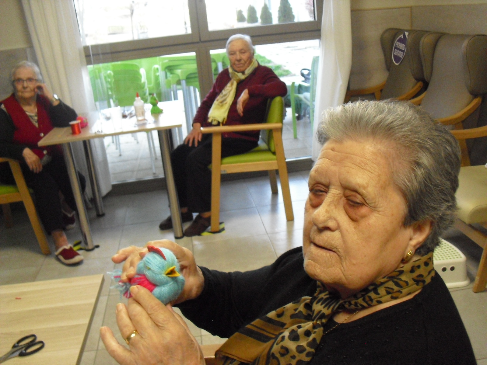 Tenemos las fotos del cumpleaños de Salvador que estuvo muy contento con tantos pastel y bizcocho y por supuesto la visita de la familia!!!. Maribel preparó un taller de confección de pajaritos con lana, los hicieron en varios días y quedaron muy monos. También hace otro tipo de talleres con otros pacientes que no pueden hacer esas actividades más difíciles...el objetivo es conseguir estimularlos cognitivamente adaptándonos a las necesidades de cada uno. A finales de marzo vamos a hacer una fiesta de primavera y Maribel me comentó que habían pedido chocolatada y churros!!. Hasta que podamos comprar churros en la churrería de Daroca vamos a cambiarlos por croissants recién hechos en el horno!!! Despedimos a Felisa y mandamos un fortísimo abrazo a la familia pues nos ha dejado y ya descansa en paz!! no disponemos de fotos de Felisa ya que ha estado muy poco tiempo con nosotras y por su deterioro cognitivo no participaba en los talleres, que es cuando hacemos las fotos. No importan las fotos, lo importante es que la tuvimos ese tiempo con nosotras y la familia nos confió su cuidado y a través de su hija pudimos conocer cómo era: una gran mujer, ama de casa y trabajadora incansable del campo!!!