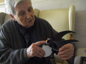Maribel preparó un taller de perritos que se hace con bayetas y unas golondrinas con cartulina negra que les quedaron preciosas. Han adornado el mural de la Sala de Día enmarcando el cartel de la primavera y con los dibujos de flores y mariposas. Les encanta hacer cosas y estar entretenidos. Enseguida empezaremos a salir a los jardines para hacer la gimnasia en el exterior y disfrutar del aire libre. El buen tiempo hará posible tener más visitas y ampliar el horario de las  mismas, Un abrazo a todos y todas!!!