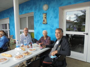 La fiesta de fin de verano se hizo el viernes 24 de septiembre a petición de algunos de los familiares que al estar lejos venían ese día de visita. Los abuelos esperaban ese día con ilusión y muchas ganas, ya que iba a ser un Día de Encuentro entre familiares y abuelos!!. Desde la pandemia sólo habíamos tenido la fiesta del Día de las Tapas, con un número más reducido y se iba a producir el viernes 24!!!!!!!!!!! Nuestro alcalde de Romanos también pasó a vernos ese día!! Todo estaba programado y organizado. La primera recepción de familiares se producía en la puerta con desinfección, toma de temperatura y comprobación de la utilización de mascarillas. En este chequeo estábamos Gustavo y yo. La entrada se produjo en 30 minutos escalonadamente para evitar aglomeraciones. Segunda recepción: Pilar y Maribel, distribución familiares en las mesas asignadas en la que estaba esperando su abuelo. Y recogida de las  bebidas. Todo se realizó en el exterior, en nuestros jardines. La comida estaba emplatada individualmente por mesas para evitar contacto... La gran protagonista: la Charanga de Daroca llegó a las 16:30 y comenzó la fiesta!!!!!!!! bailamos, reímos...y mi  equipo de trabajo formado por Olga, Mª Carmen, Esther, Monica, Mª Jose, Manuela, Pilar V., Pilar A., Maribel y Jordina pusieron todo de su parte para que fuese un día especial para todos. Hemos decretado por unanimidad absoluta que todos los años se va a repetir la Fiesta de las Tapas y la Fiesta de Fin de Verano!! Qué mejor día que hoy para poner la placa de agradecimiento que nos ha regalado la familia de Pilar Royo, que la pandemia nos arrebató... En este día de celebración me acordé de todos mis abuelos y ellos seguro nos estaban observando!!!!!!!!!!!