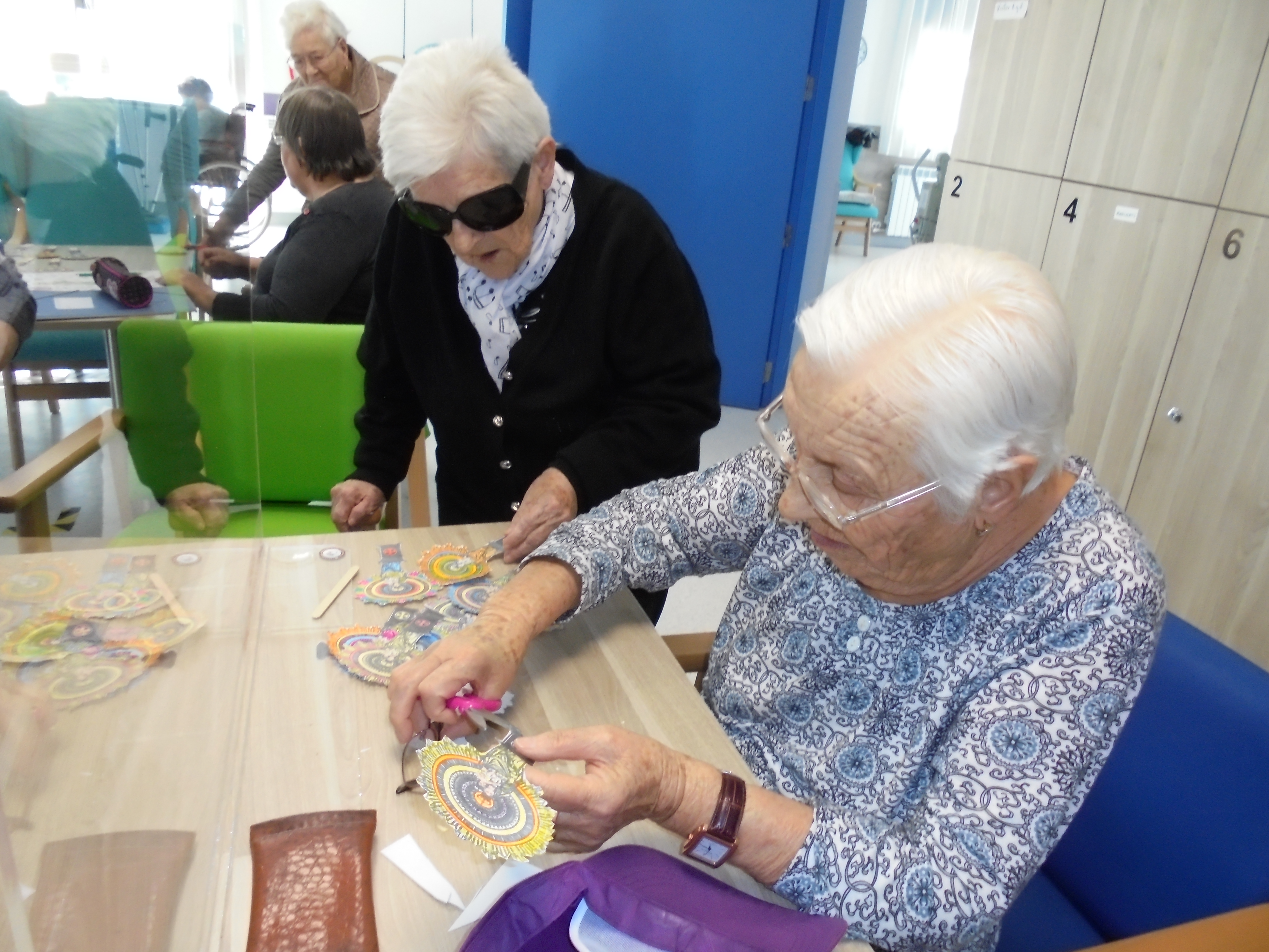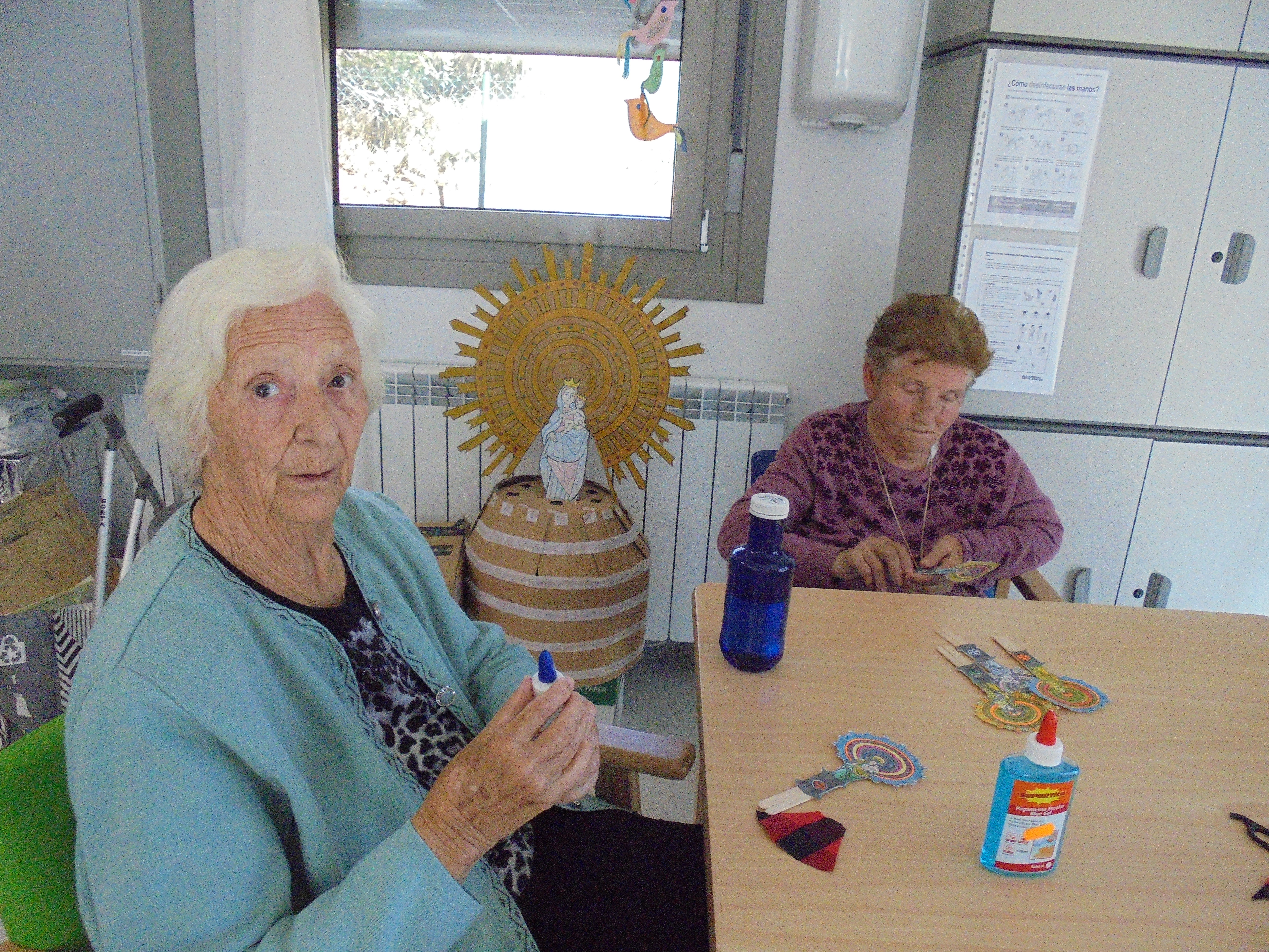 Aprovecho a poner las fotos de los cumples de Mª Angeles y Felicidad que fueron en septiembre. Para los Pilares prepararon unas Virgencicas del Pilar con Maribel como manualidad en este mes de octubre: pintaron las Virgencicas con las pinturas, cortaron con el cahirulo el mantón y lo pegaron en los palos de madera. El miércoles 13 de octubre hicimos nuestra ofrenda del Pilar.