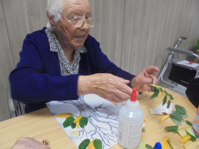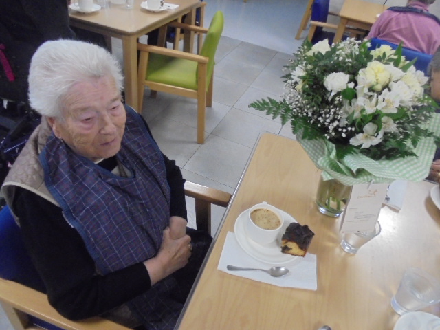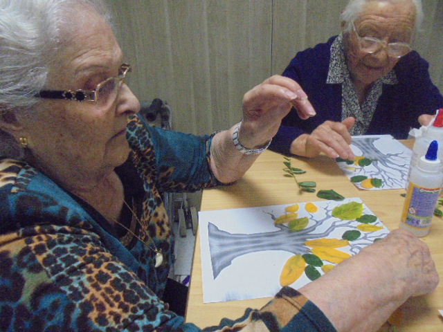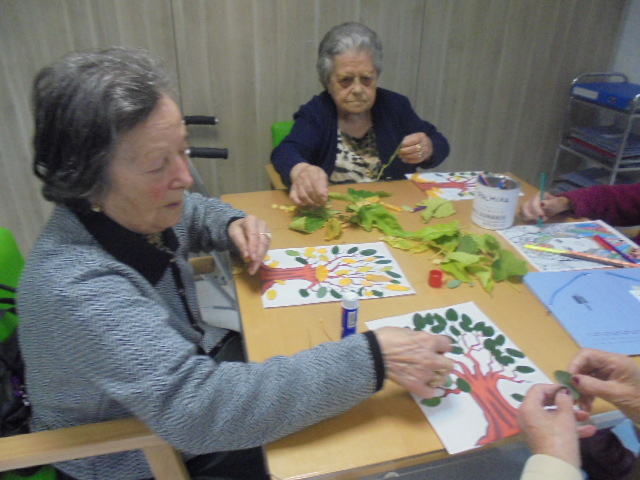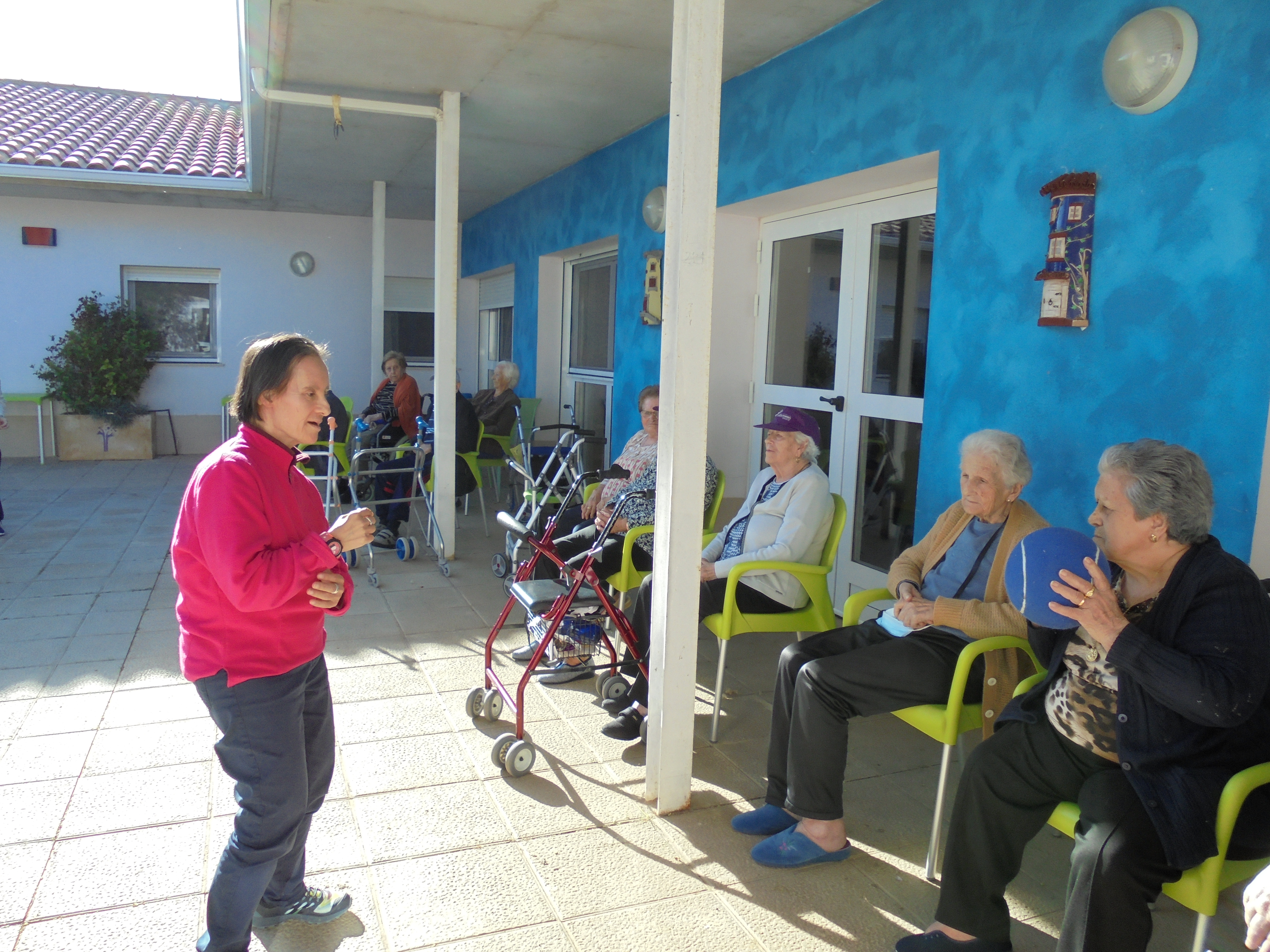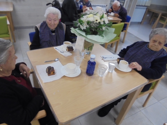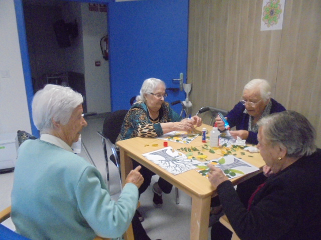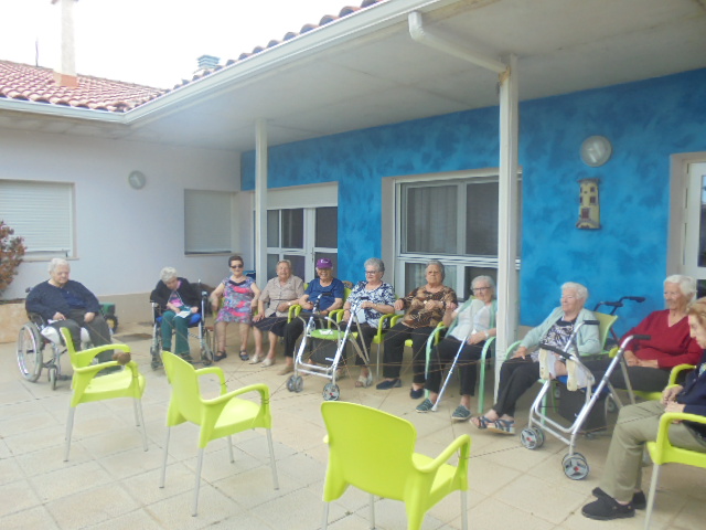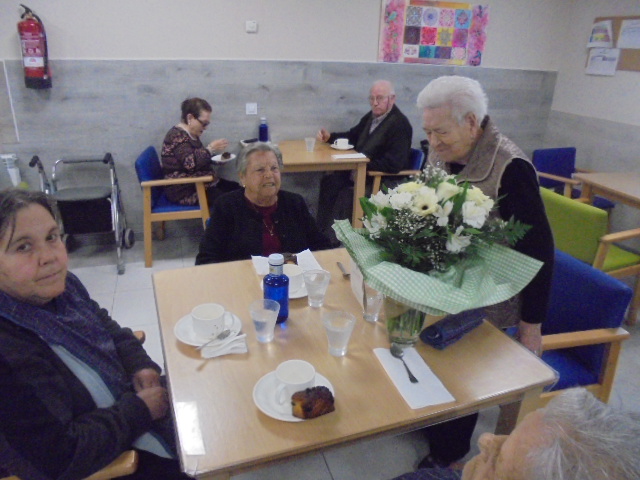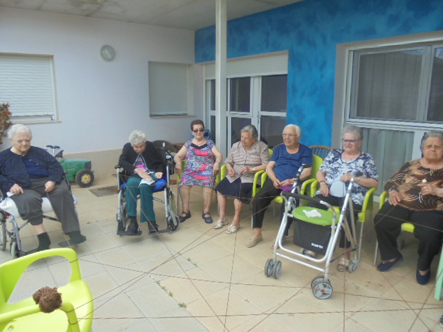 Tenemos que seguir trabajando diariamente con ellos en los talleres porque es importante seguir activos, debemos continuar el proyecto de vida de cada uno de ellos cumpliendo sus objetivos. Los objetivos que ellos quieren cumplir, de eso se trata  el modelo de Atención Centrada en la Persona: ellos son los protagonistas. Varios talleres voy a exponer: el taller de la cuerda en el que van tejiendo como una tela de araña al ir pasándose de unos a otros el ovillo de lana, el taller de la pelota que le encanta a Ana y un taller de hojas en la que van haciendo un árbol. Mari celebró su santo con un bizcocho de chocolate para compartir con todos sus compañeros y recibió un precioso ramo de flores de su familia. Tenemos muchas ganas de que llegue el buen tiempo para que puedan pasear por los jardines todos y pedaleen  en las bicicletas del gimnasio exterior!!!!!!!