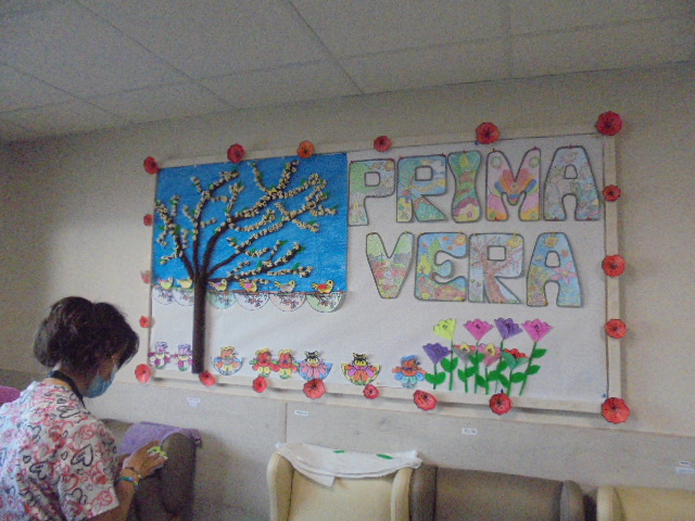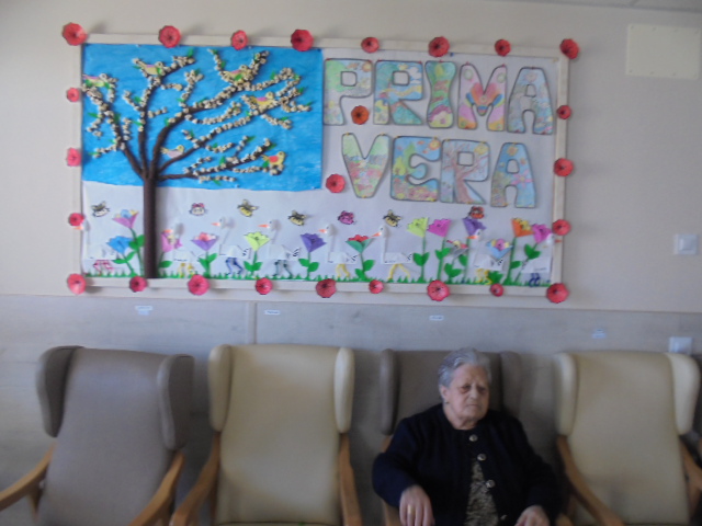 Nuestro cura Federico siempre se acuerda de nuestros abuelos y de la Residencia Campo Romanos y el domingo 2 de abril  vino  con la Cofradía de Cristo en la Agonía de Daroca. Salieron desde Badules andando con el Cristo y  tocando los tambores  llegaron al parking de la residencia.  Lástima que el tiempo no acompañó y nuestros abuelos no pudieron salir todos a verles pero la intención es lo que vale y ellos quedaron igualmente agradecidos. Las mujeres de Romanos colaboraron para preparar un refrigerio para todos: Feli, Mª Luz y Tere hicieron rosquillas, trajeron café, bizcochos...Fina hizo torrijas, la residencia ayudó con la leche, pastas, bizcochos... Además el jueves Federico volvió a visitarnos de nuevo y celebró la misa del Domingo de Ramos y bendijo las ramitas de olivo que trajo para cada uno. Muchísimas gracias Federico por dar la misa cada semana ya que para ellos es muy importante ese momento de fe. También compartimos con todos vosotros el mural de primavera tan bonito que han elaborado y la frase para el mural típica de esta época, ya estamos esperando los primeros brotes de las hojas de los árboles y contemplando las flores de los almendros y de algunas macetas....la primavera ya está aquí!!!!!!!!!!