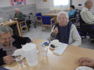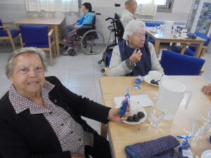 Este mes de mayo y  junio hemos tenido muchos cumpleaños que iremos poniendo poco a poco. Hoy el turno es para Esther, Hermitas y Juan Antonio, que les encanta celebrarlo con el resto de compañeros de la residencia. Además nuestro cura Federico vino a celebrar la misa y trajo un obsequio de la Esclavitud y las Damas de los Sagrados Corporales con motivo del Corpus de Daroca. Consistía en unas frutas de Aragón y unos moscatelitos de las Pastelería Manuel Segura. Muchas gracias por tener presentes a mis abuelos de Residencia Campo Romanos!!!!!!!!!!!