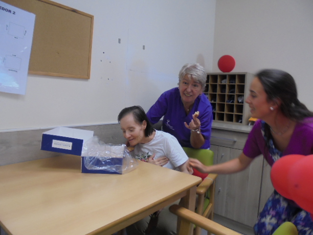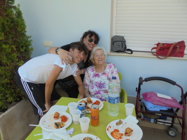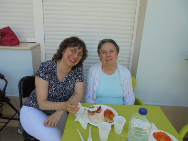 Nuestro concurso de tapas es la fiesta más esperada de todas ya que es un día de encuentro entre familiares, trabajadores y residentes. Algunos de los trabajadores hacen una tapa en cantidad suficiente para la degustación de todos los presentes y luego se hará una votación para elegir qué tapa es la que más ha gustado. Todas tienen premio. Se reparten tickets de cada una de las tapas que cada uno entrega cuando va a las mesas a buscarlas y luego vota las dos tapas que más le gustan dejando esos dos tickets de nuevo en su mesa correspondiente. Finalmente se cuentan todos los tickets y el ganador elige el premio que más le gusta y así sucesivamente hasta que todos los participantes cogen un premio. La residencia paga todos los ingredientes pero el esfuerzo es de los trabajadores que quieren participar y es de agradecer, muchísimas gracias!!!!!!!!!!!!! Tapas de este año: Mª Carmen hizo champiñones rellenos, Irina hizo hojaldre relleno de queso y jamon york, yo hice huevos rellenos, Eduardo hizo pimientos rellenos de gambas, Maria hizo hamburguesas veganas, Mónica hizo brazo salado de Uruguay, Esther hizo croquetas de bacalao, A los abuelos les encanta esta fiesta de las tapas porque  son muy elaboradas y les saben buenísimas, refrescos para todos y música para bailar!!!!!!!! qué más se puede pedir. Sale Manolo y su familia, le seguimos teniendo presente!!! Teníamos pendiente las fotos del cumple de Ana que ya las ponemos, una super sonrisa conseguimos ese día de Anita, qué mejor regalo!!!!!!!!!