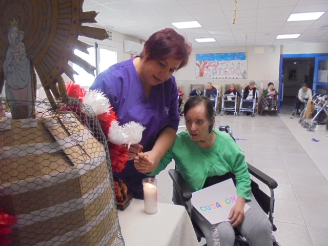 Como todos los años nuestra ofrenda de flores a la Virgen del Pilar se vive con mucha ilusión. Comienzan los preparativos la semana de antes confeccionando las flores para el manto y se preparan los carteles de cada pueblo. Aprovecho también para poner las fotos de Elena, la terapeuta ocupacional, que vino vestida de baturra como fue en la ofrenda,  para que los abuelos pudiesen verla, un gran detalle que animó a todos. Nuestro cura Federico pone la guinda del pastel ofreciéndoles a todos nuestros mayores una misa que no olvidarán en todo el año. Gracias Federico y Viva la Virgen del Pilar!!!! La próxima semana os pondremos los talleres del Pilar y la comida de ese día tan especial....