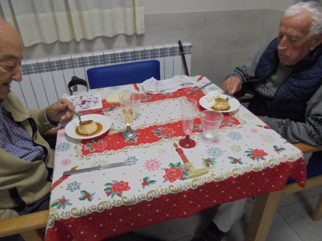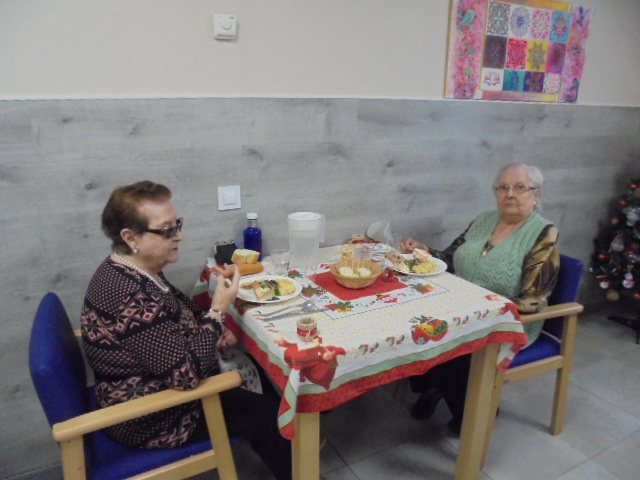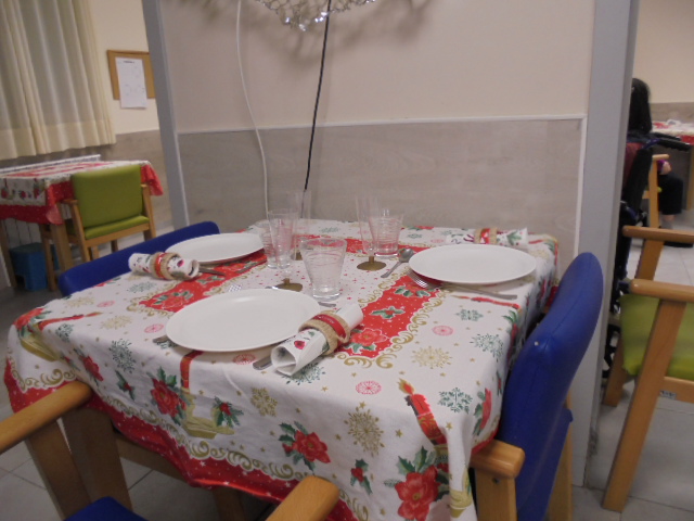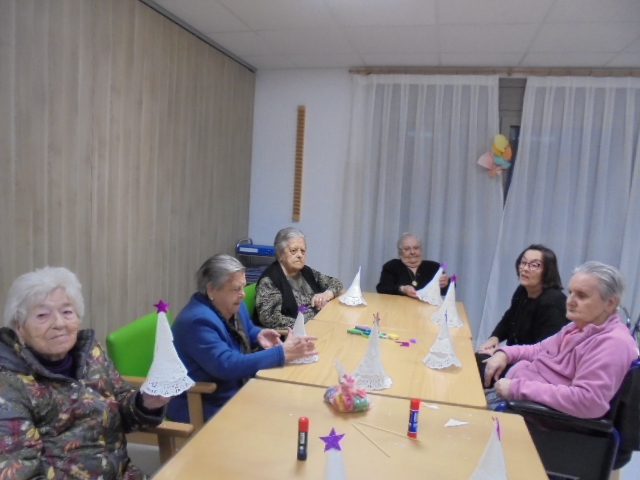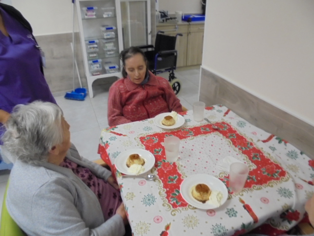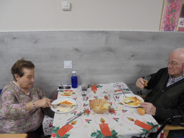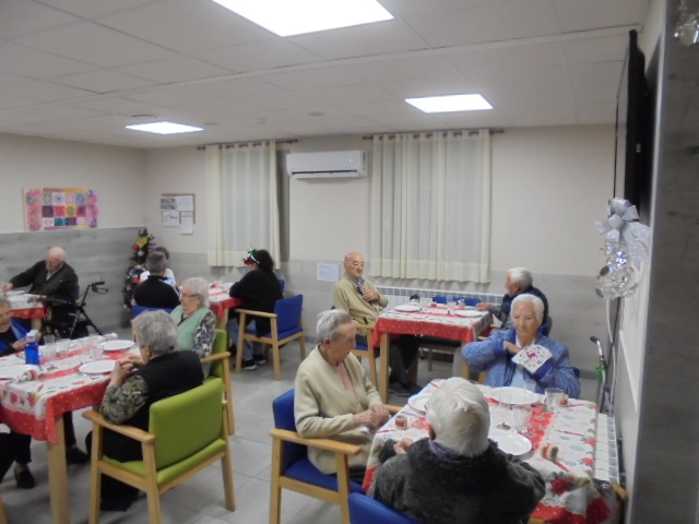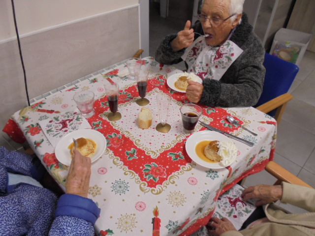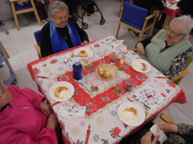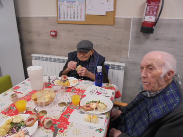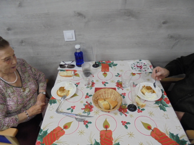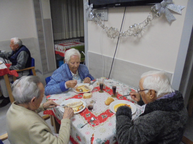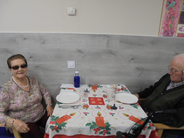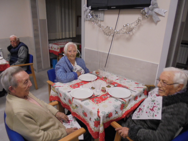 Hemos preparado este año los menús de Navidad con mucha ilusión para sorprenderles y que disfrutaran de esos días. Nochebuena: Cóctel de gambas y Lubina al orio, Flan de Huevo, Turrones y  mazapán, Cava y sidra. Navidad: Canapés variados y langostinos, Ternasco asado con patatas panadera, Tiramisú, Turrón y mazapán,  Cava y sidra. Como todos los años los familiares que quieren pueden venir a comer o cenar con ellos, siempre son bienvenidos y forman parte de nuestra gran familia. Siempre les explicamos el menú a todos y lo hablamos con ellos para saber su opinión, también les preguntamos tras la degustación y parece ser que nos ponen buena nota!!! Uno de los talleres que han hecho es el de los árboles de Navidad con manteles que compartimos con vosotros. También han hecho las flores de Pascua que quedaron geniales y lo publicamos en el Instagram de la residencia. Feliz Año a todos y todas desde Residencia Campo Romanos!!!!!!!!!!!!!!!1