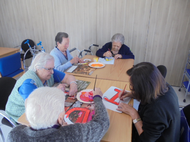 Para San Jorge elaboraron un taller y adornaron el mural con Carolina,  les quedó chulísimo!! También cumplieron años tres de nuestros usuarios:  Mariano con bizcocho y trenzas,  Carmen con un tarta y  Juan Antonio con tortas y chocolate a la taza. Vamos que no paramos!!!!!!! Y tenemos que agradecer a nuestro cura Federico y a las monjas Hijas de la Caridad de Zaragoza que el 30 de marzo celebraron la Pascua con nuestros mayores, con música en directo y sus guitarras. Quedaron encantados con esa tarde tan especial que nos ofrecieron. Muchas gracias Federico y sus acompañantes!!!!!!!!!!!!