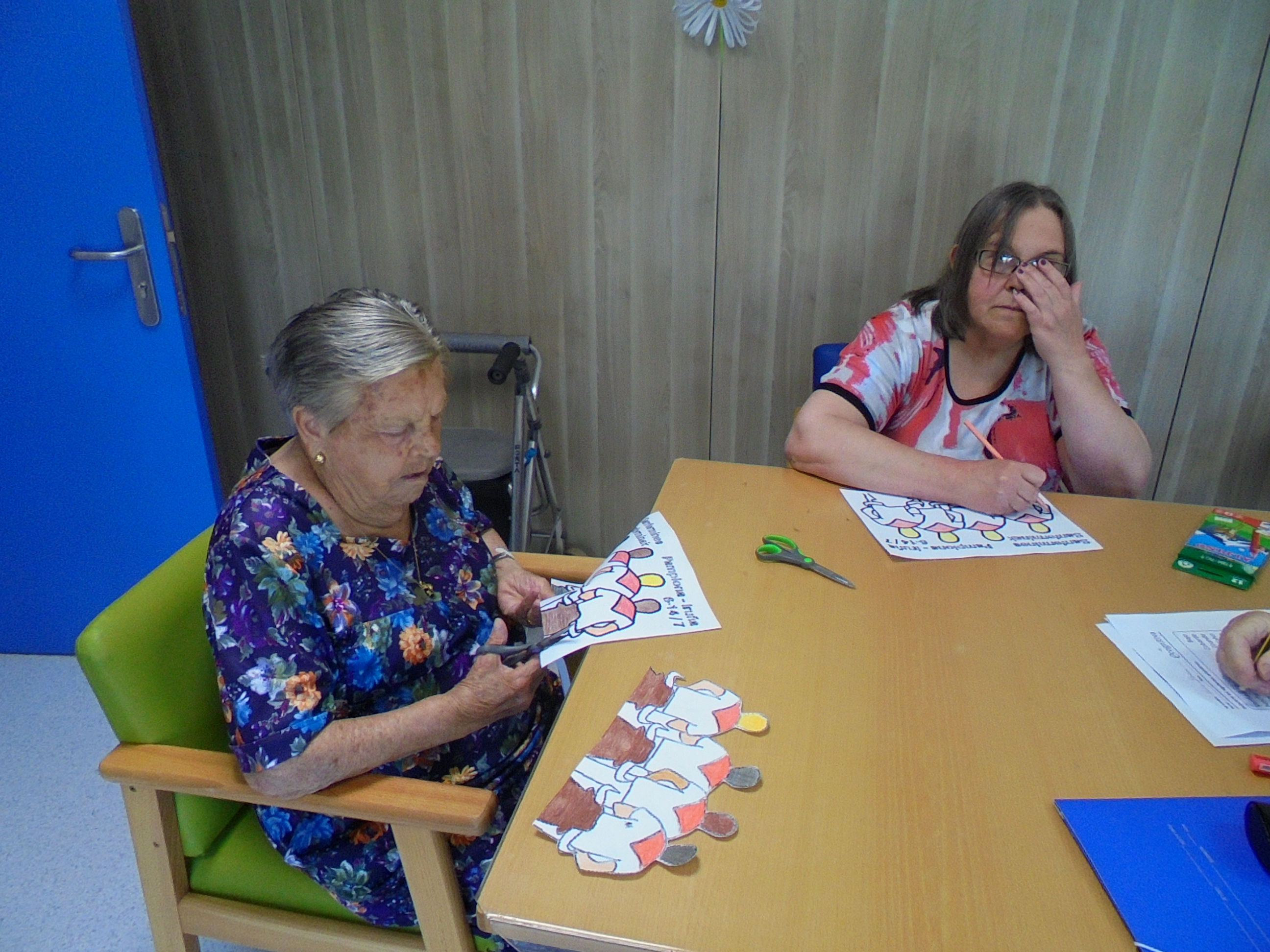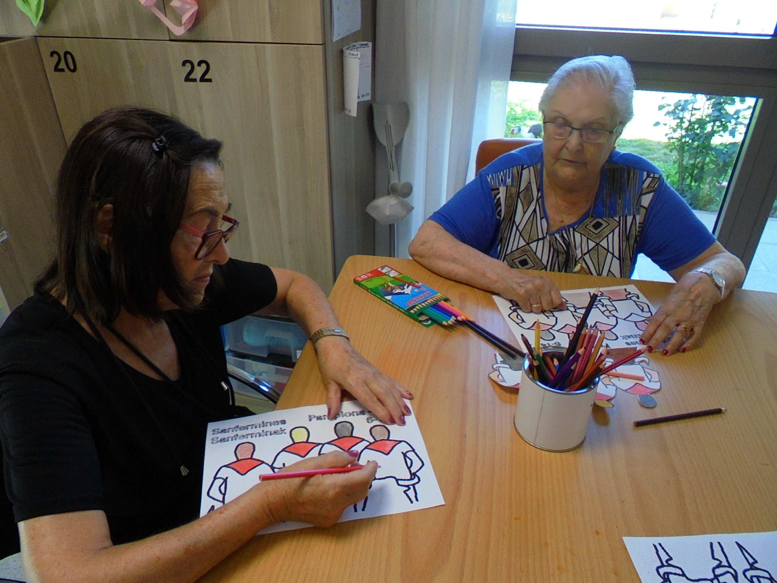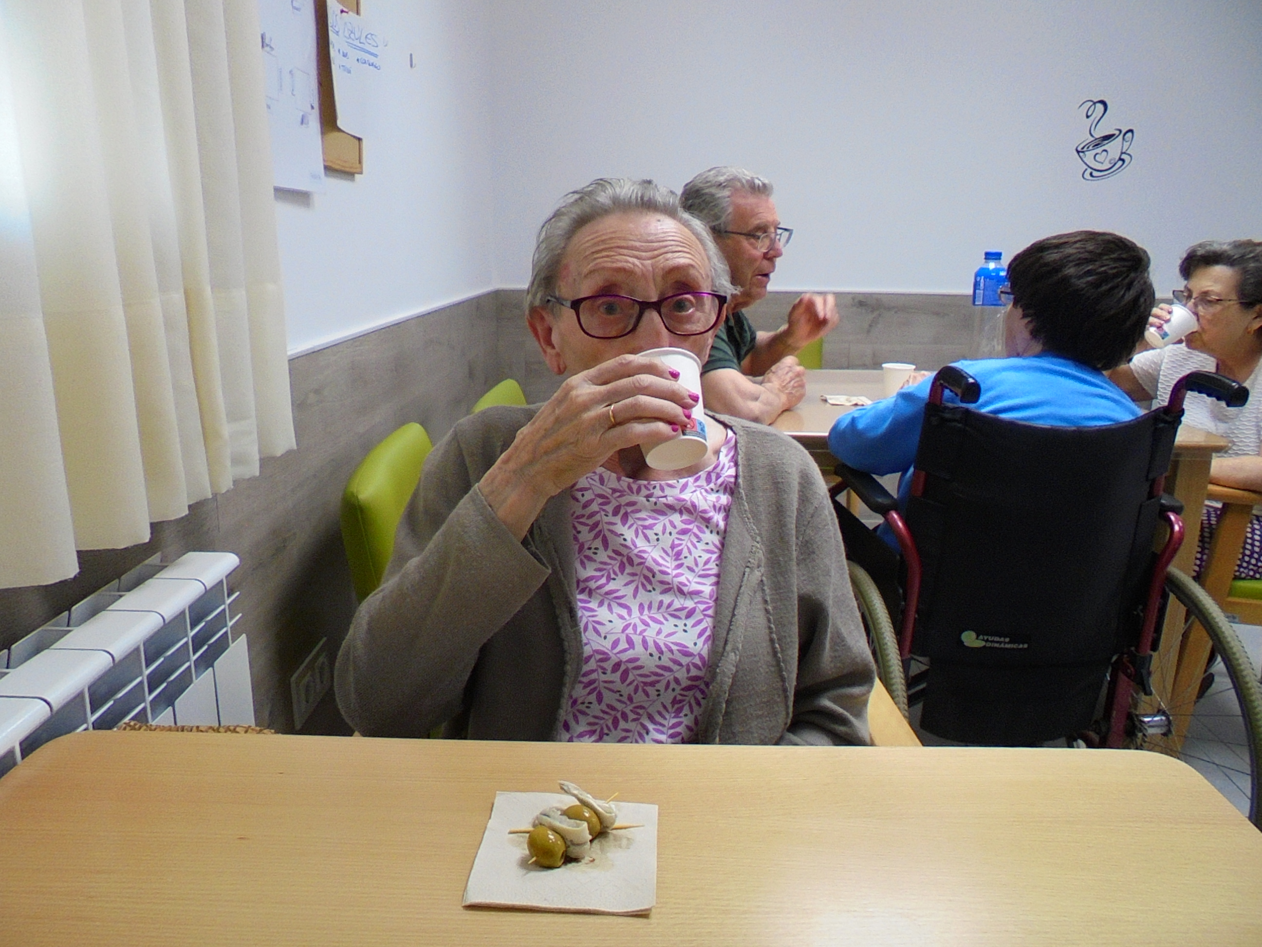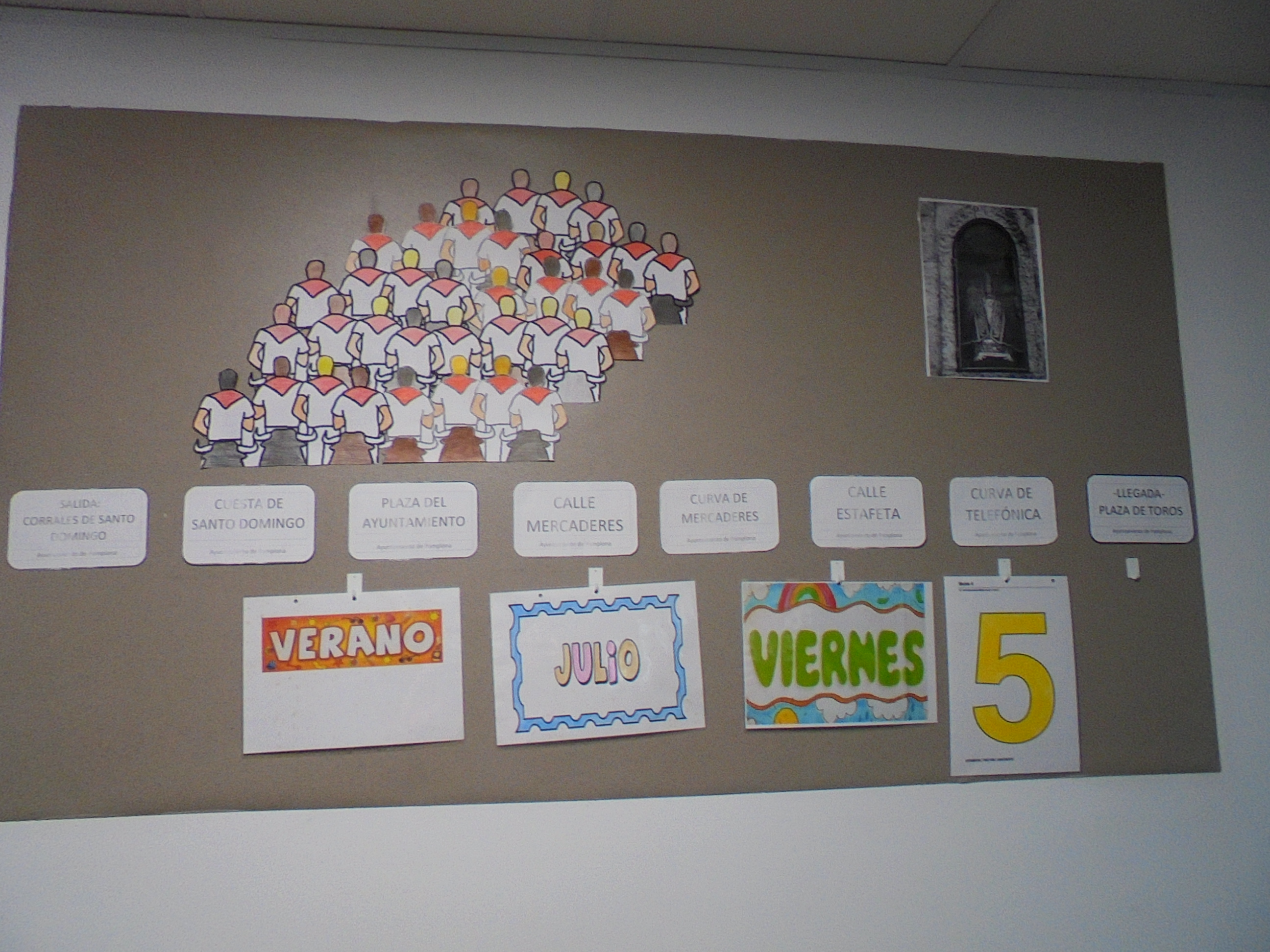 En la residencia seguimos los San Fermines todos los días, por la mañana ven el encierro antes del desayuno, hacemos talleres y hay encierro con nuestro toro. Seguimos con nuestro tardeo pero no pudimos hacerlo ese día en los exteriores porque hubo tormenta: tocaba tapa de boquerón!!