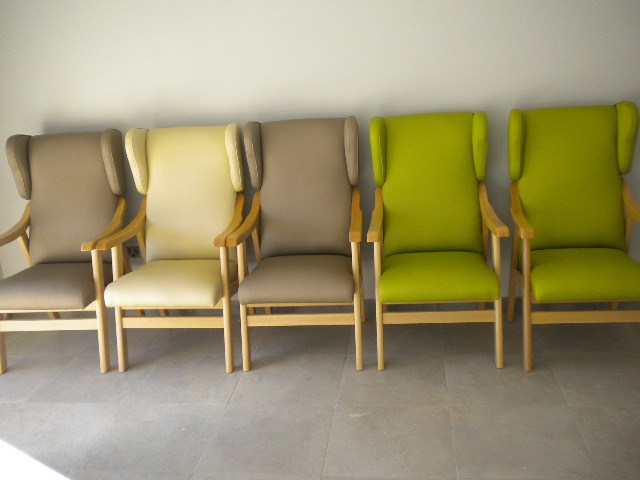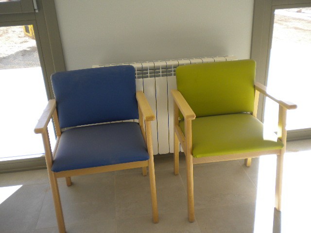 Empieza a llegar el mobiliario de la residencia: sillones orejeros (para que si se duermen la cabeza no se les caiga hacia los lados…que  cunado te duermes así luego te duele todo) para la Sala de Día, sillas para los comedores y  las camas articuladas. Dimager, material geriátrico, es el que lo ha suministrado, gran calidad y profesionalidad. La peluquería la he pintado y he colocado el papel de una forma novedosa…