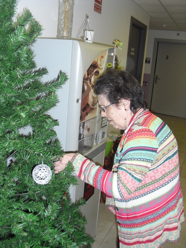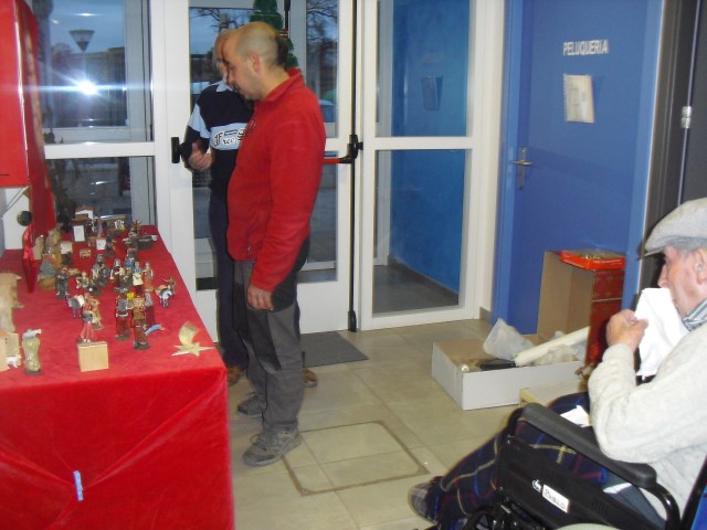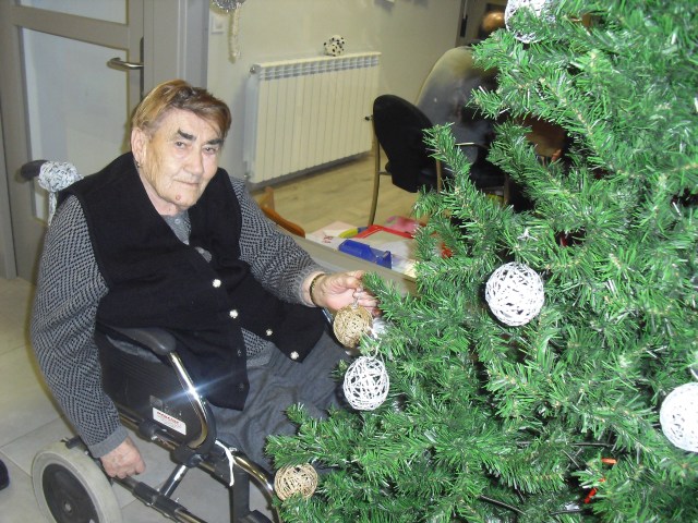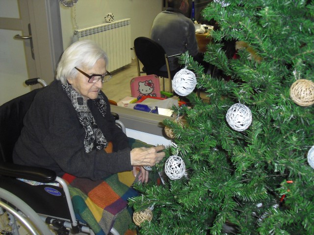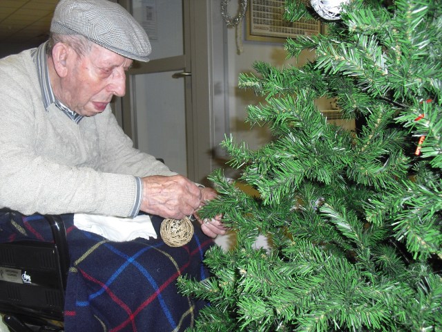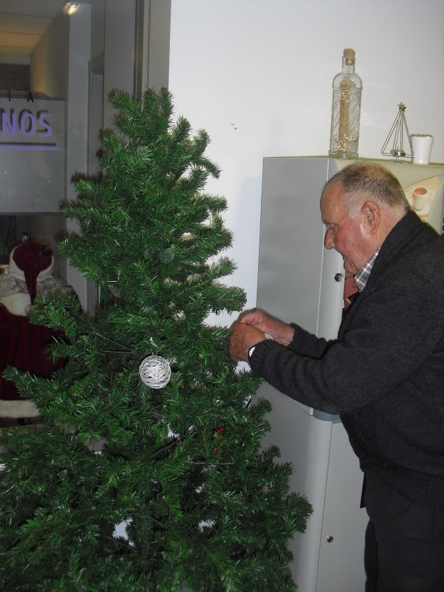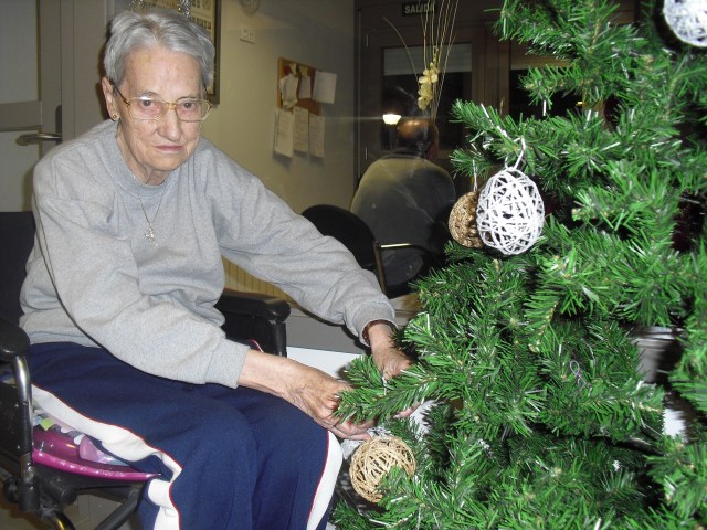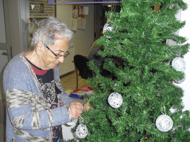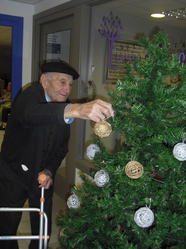 Javier, Victorino y Pablo encargados de montar el Belén, un regalo de Pablo con los adornos de Navidad que hemos colgado por toda la residencia. La próxima semana os cuelgo la foto del Belén terminado. Además la residencia Roma, dónde trabajo y que en este mes se cierra por jubilación, nos ha cedido su arból de Navidad. Estamos reciclando todo lo que podemos y Laura, la terapéuta, se ha currado las bolas del árbol con todos y ya lo han adornado!!! Lo que más me ha gustado de la semana es que tengo un abuelico que cuando me ve entra en el despacho, se sienta y me pide que le quite los calcetines….yo me rio mucho, me arrodillo y se los quito. Pues con tan poco se le puede hacer feliz!!!
