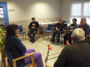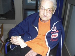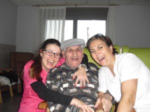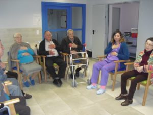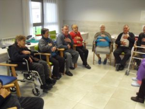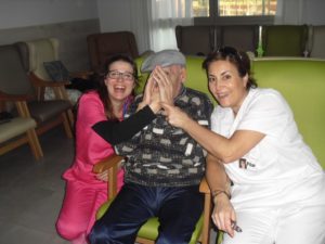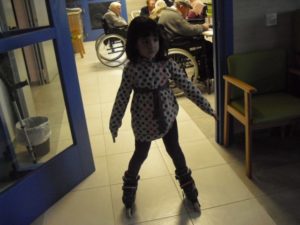 Esta semana ha empezado Beatriz, la fisioterapeúta, a enseñar a los abuelos a disociar la respiración torácica y la abdominal para mejorar la función respiratoria y las capacidades pulmonares. Me explicó que están realizando respiraciones profundas enfatizando la inspiración pausa post-inspiratoria de 3 segundos  antes de la espiración pasiva relajada. Resumiendo que vamos a prevenir las bronquitis y neumonías…para llegar a los 100 años. También pongo unas fotos muy divertidas, entre ellas a  Nayara patinando por la residencia…y a Mª Pilar comiéndose un sandwich de nocilla!!!, la que no come!! me parece que come bien sólo lo que le gusta.