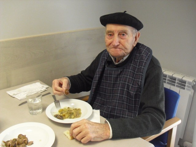 Este domingo he estado de pinche de cocina de Luis, el nuevo residente, que le encanta la cocina y nos ha hecho un rancho de caracoles con conejo de monte exquisito y cardo en ensalada. El sábado estuvo lavando los caracoles y preparándolos, dejamos las patatas peladas en agua, sofrito troceado…todo lo que pudimos dejarnos hecho. Ha sido un placer tenerlo en la cocina codo a codo conmigo…y todos hemos disfrutado de una experiencia muy agradable pues siempre se aprenden cosas.