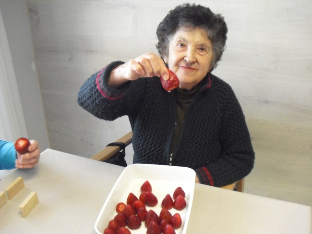 Un dia tan especial como el Dia de la Madre se merece un postre para celebrarlo: tarta de manzana y fresas buenísimas de la Frutería de Daroca. Las madres son la mejores cuidadoras porque cuidan sin esperar nada a cambio…..para todas aquellas personas que han cuidado a alguien por amor, para ellas son las fresas. Todos sabemos lo que supone saborear una fresa bien roja en la boca y ese momento quise que lo disfrutaran todos los abueletes…