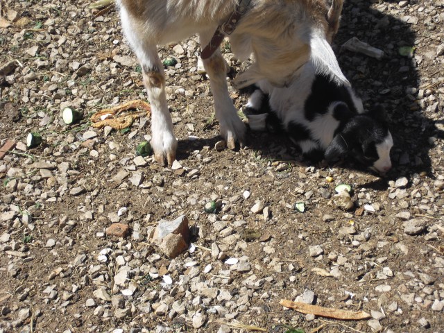 Lucy, la cabrica, ha tenido una cabrica blanca y negra preciosa  y la hemos llamado Esther. La hemos puesto nombre de persona para que se quede con nosotros siempre…los abuelicos están encantados, todos salieron a conocerla y muchos de ellos la colman a besos, y no es para menos. Sobre todo uno de ellos, Santiago, pues cuando voy a besarla yo huele a su colonia y así se que va él antes que yo. También han venido los esquiladores a esquilar ovejas al pueblo y algún abuelico se ha escapado a verlo. Y nuestro huerto empieza a cobrar vida!!! gracias a nuestro encargado Victorino, otro abuelico de la residencia.