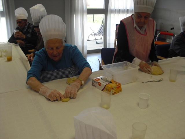 Prepararon el taller de rosquillas Beatriz, la fisioterapéuta y Laura, la terapéuta ocupacional, y colaboró una de nuestras gerocultoras, Iris. Los abuelos disfrutaron un montón mientras hacían las rosquillas pero aún más cuando se las comían!!! en las fotos lo podéis comprobar. Hemos decidido que vamos a hacer más talleres de cocina con ellos para que se sientan útiles y además con recompensa… Todos participaron y los que no lo hicieron estaban ocupados, como Luis, limpiando una gallina!!! Recordamos de nuevo que el 10 de junio viene a la residencia la Rondalla de Balsas de Ebro para amenizar con un festival de jotas a las 17:00 p.m. Los conozco hace muchos años y siempre los he llevado a las residencias donde trabajaba  y siempre les ha encantado a todos los abueletes, incluso los que están con deterioro cognitivo se emocionan. Será una agradable experiencia para todos.