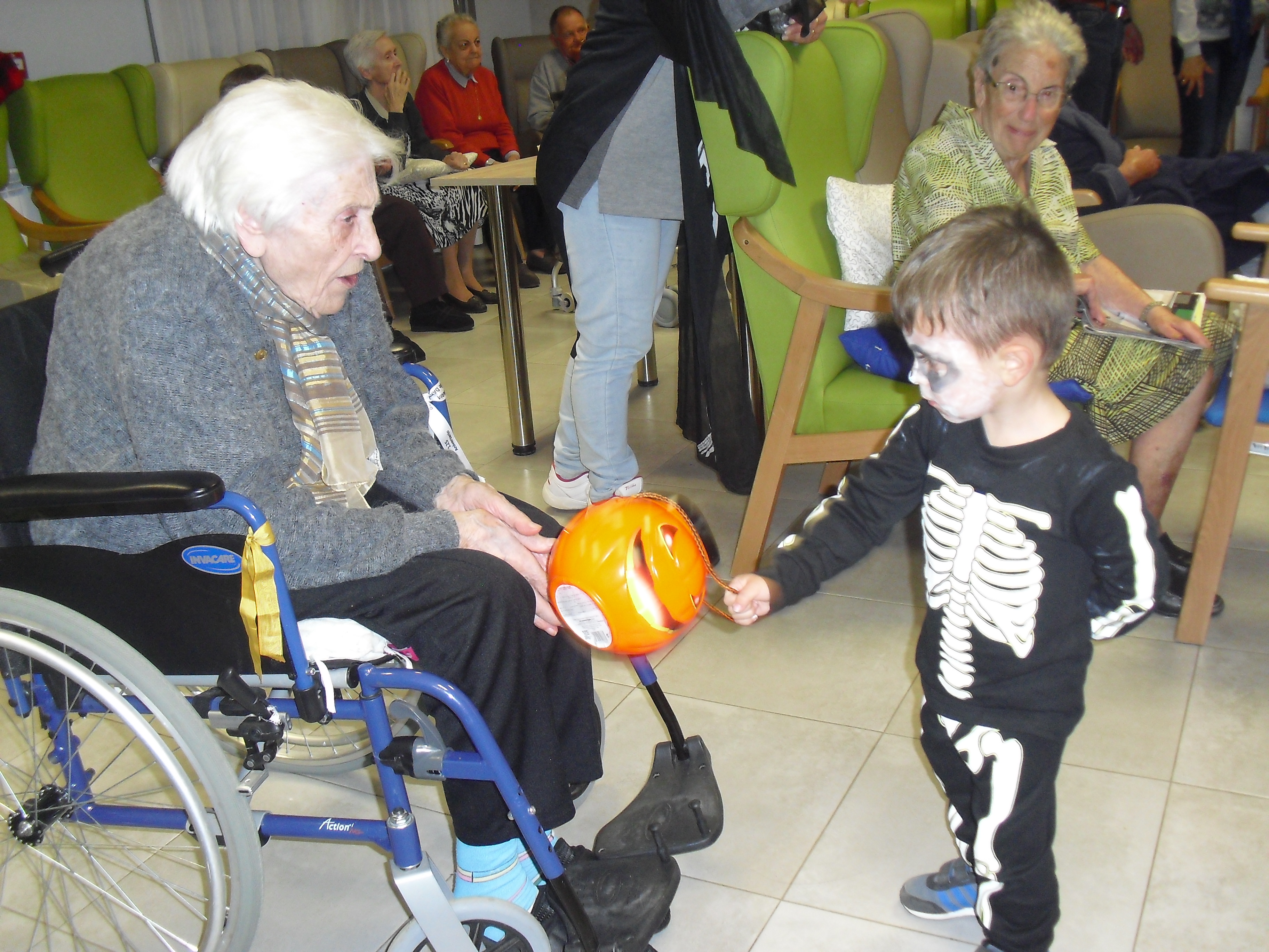 La Asociación Virgen de los Remedios de nuestro pueblo se acordó de los abuelicos de la residencia y, aunque tuvieron a las 17:00 taller de manualidades y a las 18:00 chocolate con todos los vecinos del pueblo hicieron el esfuerzo de llegar antes de las 20:00 a recoger las chucherías a la residencia…y los abuelos disfrutaron de lo lindo al verles. Muchísimas gracias desde la Residencia Campo de Romanos!! El próximo año compraremos el doble de chuches pues vinieron tantos peques que fue genial verlos. Además tuvieron el detalle de venir con nosotros antes de empezar la ruta por todas las casas del pueblo.