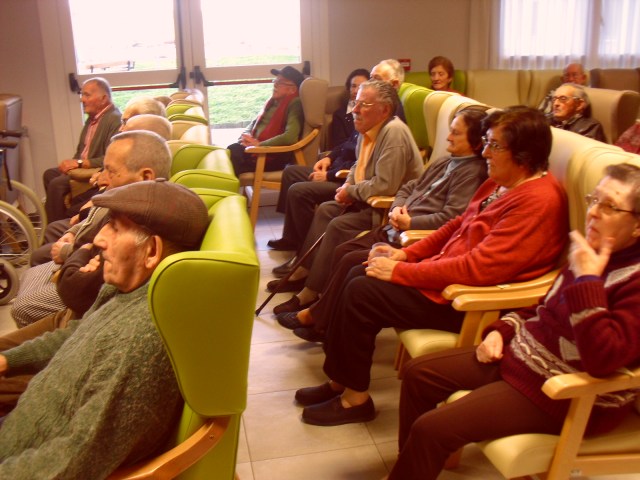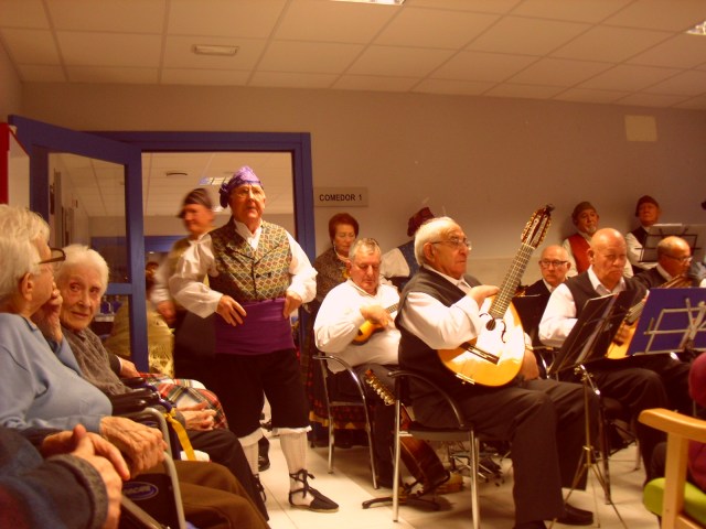 Aviso a todas las familias de nuestros residentes que estamos sin teléfono de nuevo. Movistar tiene a todo el pueblo de Romanos incluída la residencia incomunicados. Me ha costado 2 horas hacer la publicación…….. El viernes 2 de diciembre invitamos a la rondalla de Rey Fernando, de Zaragoza, a amenizar la tarde con una actuación de jotas.  Les recogió una autobús que les mandamos a las 15:15 p.m y sobre las 16:30 llegaron 40 joteros con muchas ganas de actuar, entre ellos la madre de uno de mis mejores amigos, Dorita…que es adorable. Después tuvimos una merienda para todos y todas que estuvo fenomenal!!! no ponemos fotos de la merienda para no dar envidia…la verdad es que hicimos tantas fotos al principio que se nos olvidó hacer en la merienda. Ya estoy pensando que otras actuaciones puedo traer para mis abuelicos porque disfrutan mucho: bailes de salón, bailes en línea…